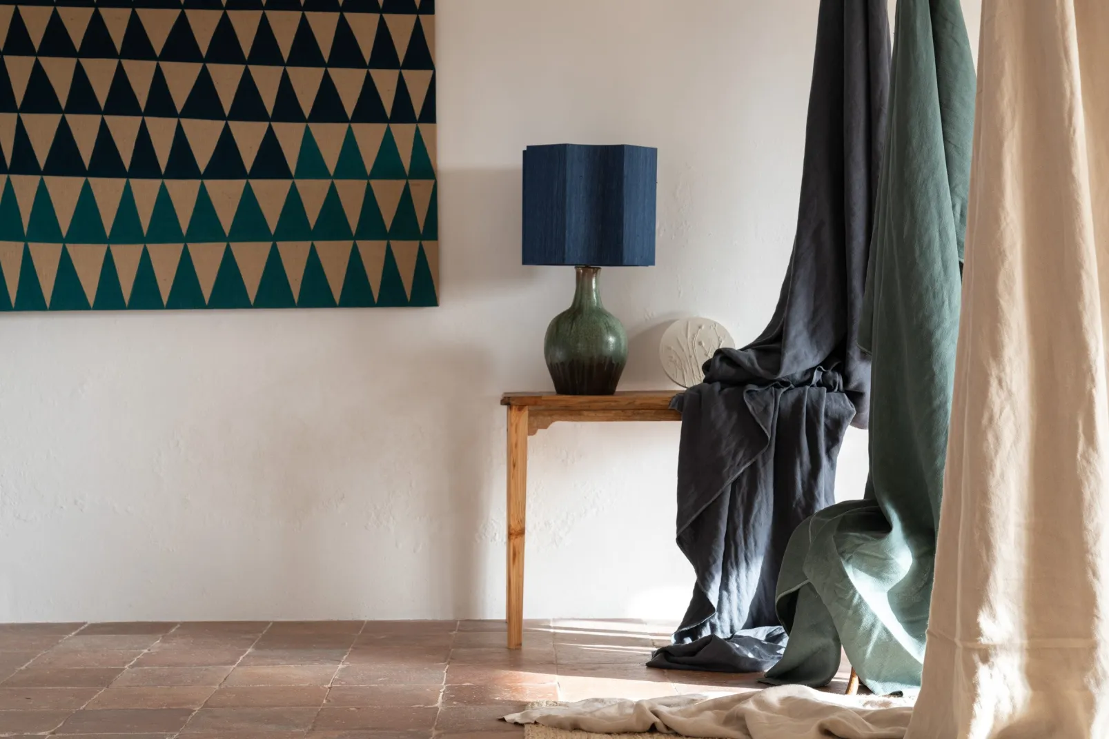 La tela El Mercader Ocean de Coordonné es un diseño liso en azul/marino de la colección El Mercader.