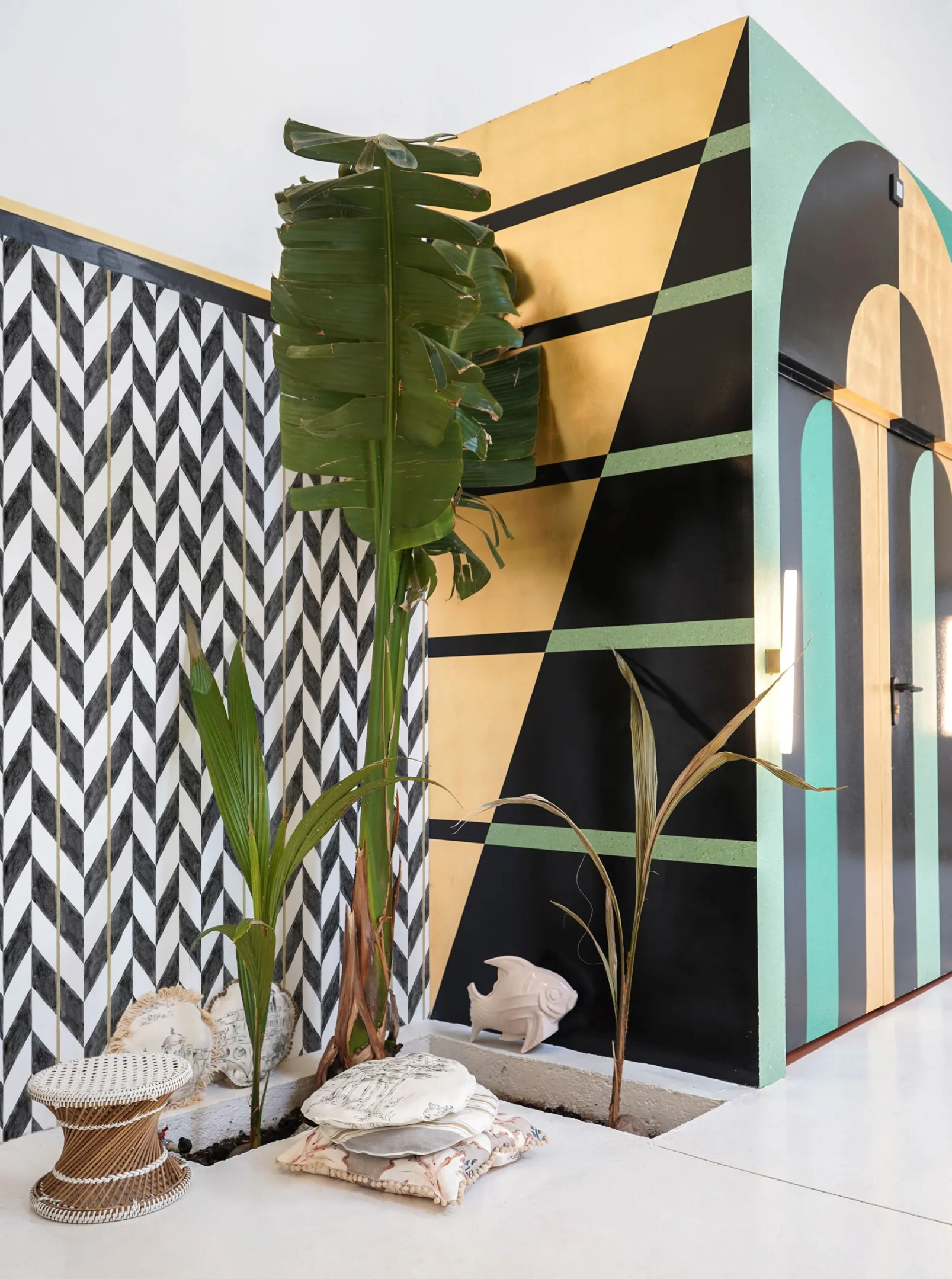 El papel pintado Espiga Negro de Coordonné es un diseño geométrico en tonos negros de la colección Toscana.