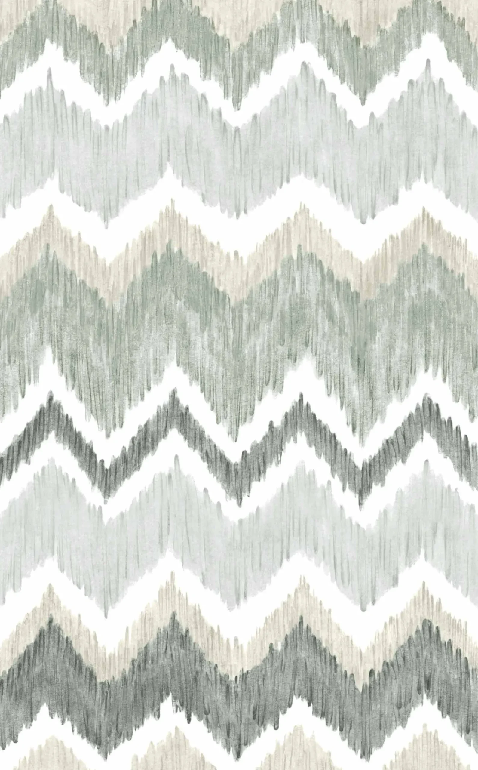 Estanque Sage de Coordonn es un papel pintado de inspiración floral en tonos verdes. Interpretación abstracta de aguas que zigzaguean sin cesar, arrastradas por el viento.