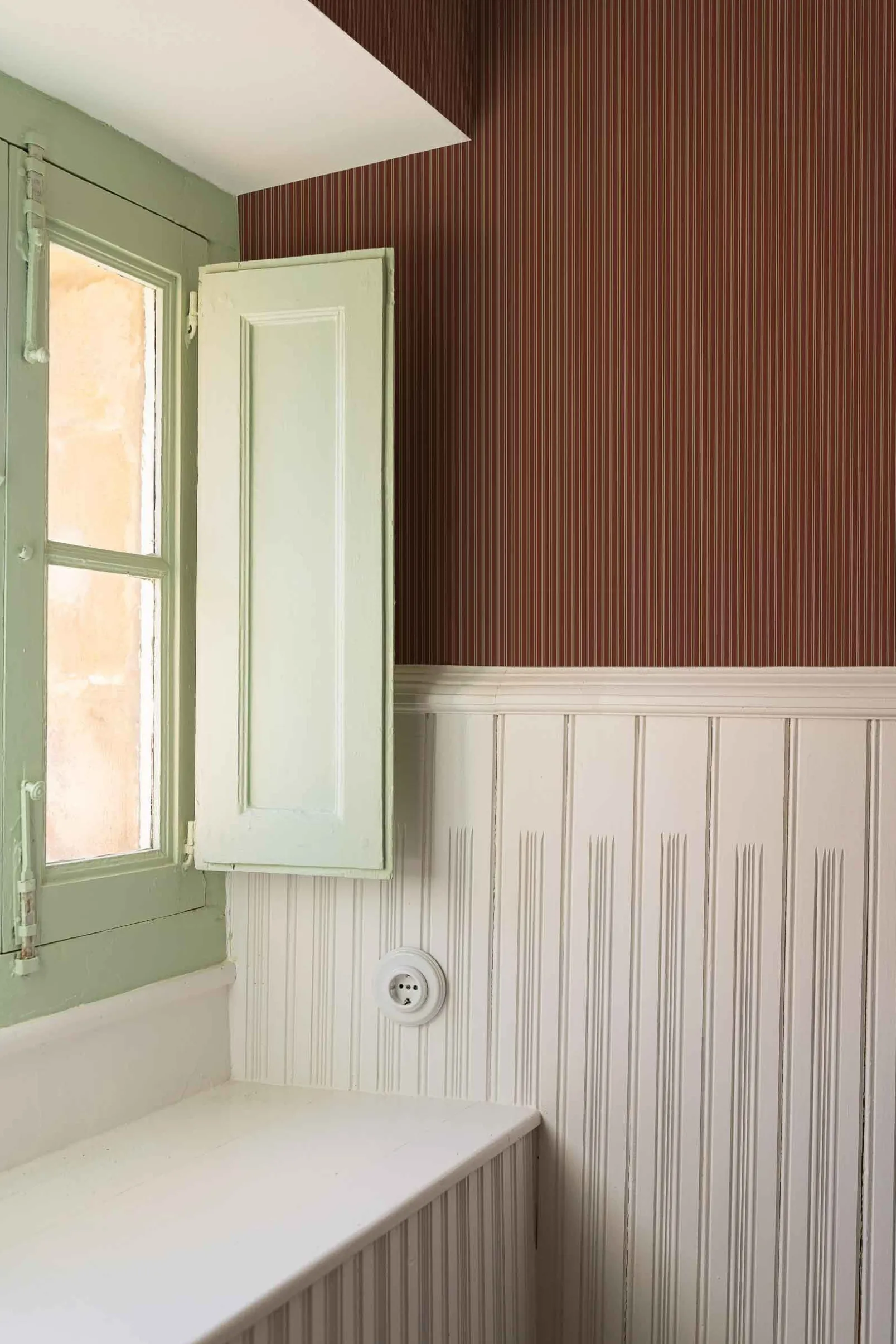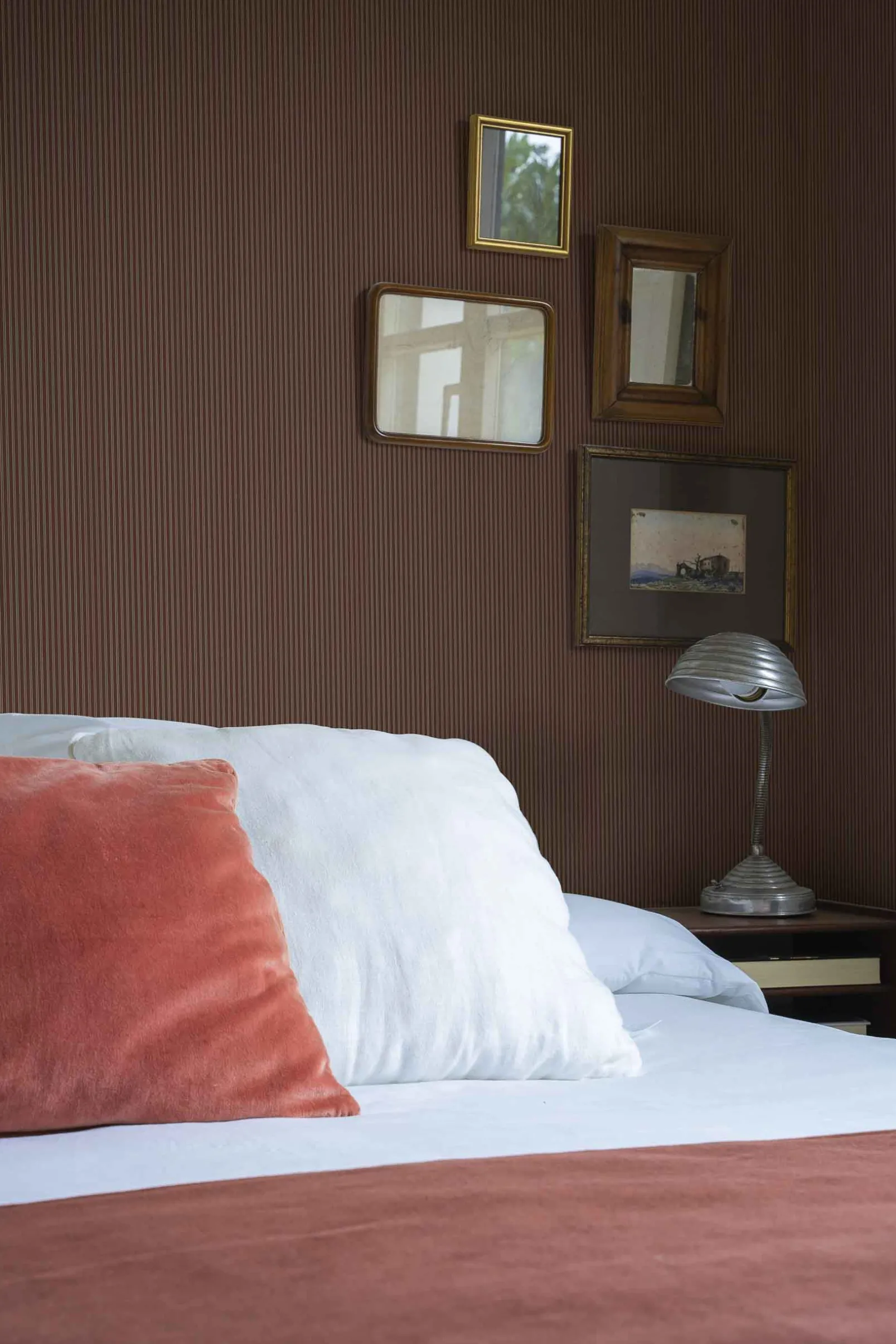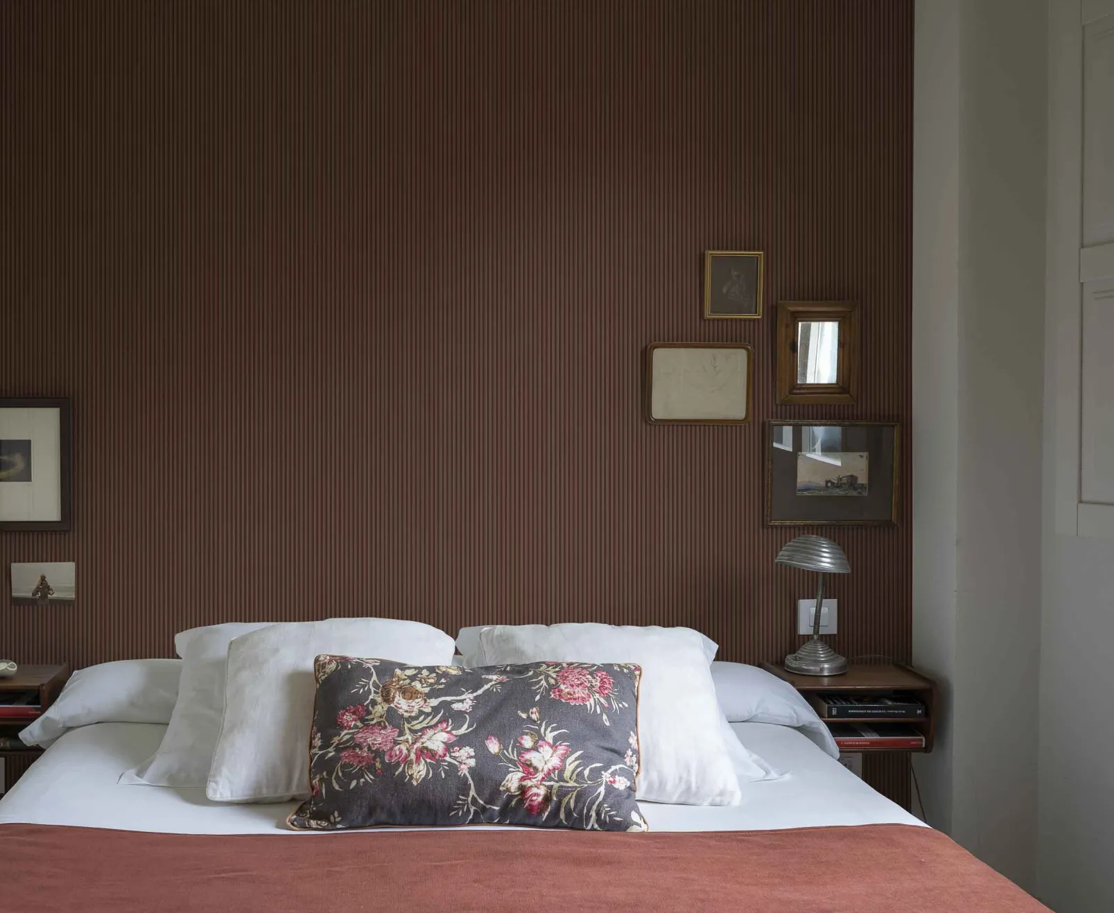 Fermín Carmesí de Coordonné es un diseño floral en Rojo/Vino de la colección Feria. Fresco multirayas bicolor.