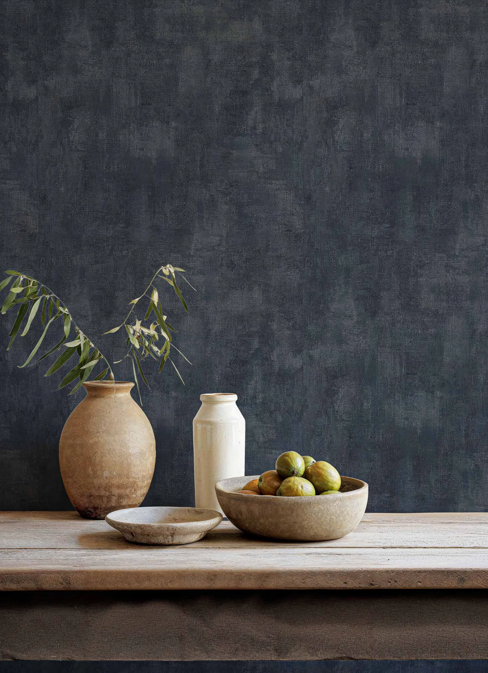 Fibras 12 de Coordonné es un diseño liso en azul/azul marino de la colección Tactus. Entrelazado simétrico de largos filamentos naturales.