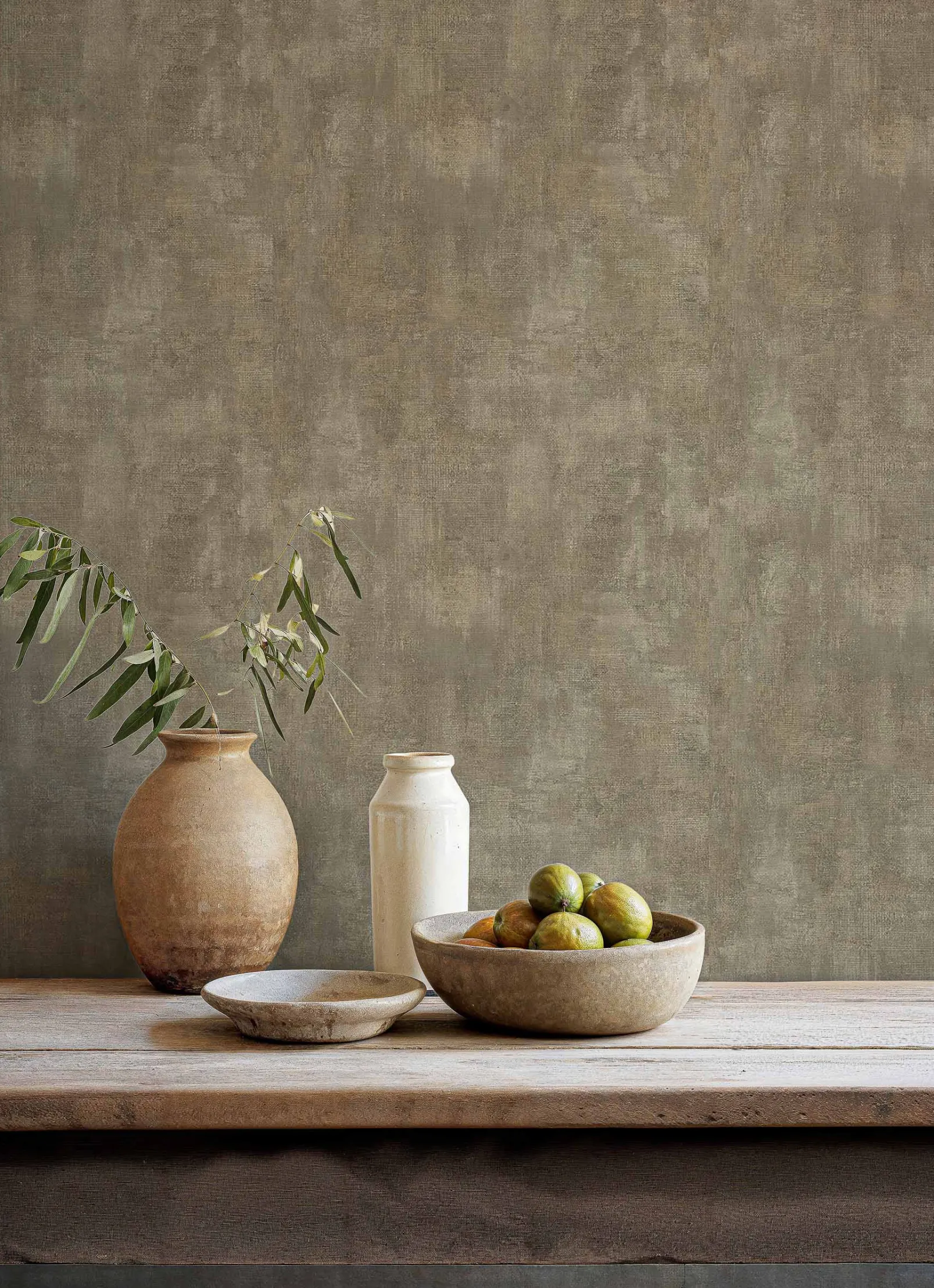 Fibras 2 de Coordonné es un diseño liso en blanco/gris de la colección Tactus. Entrelazado simétrico de largos filamentos naturales.