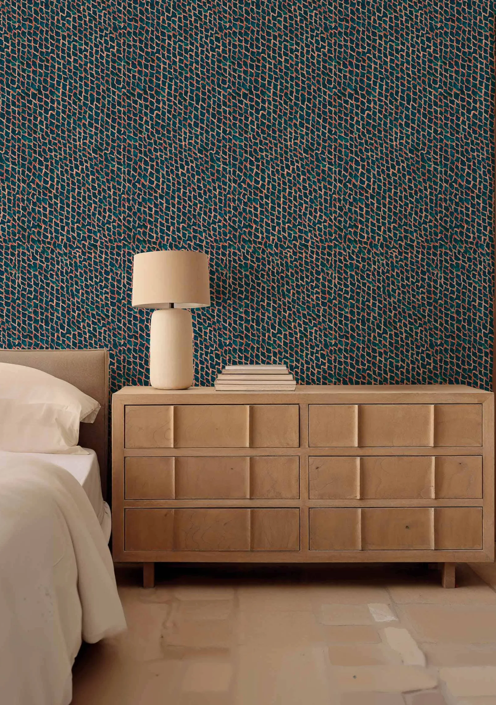 El papel pintado Fish skin Original de Coordonné es una textura diseñada en tonos azul/marino de la colección Essentia 15/5.