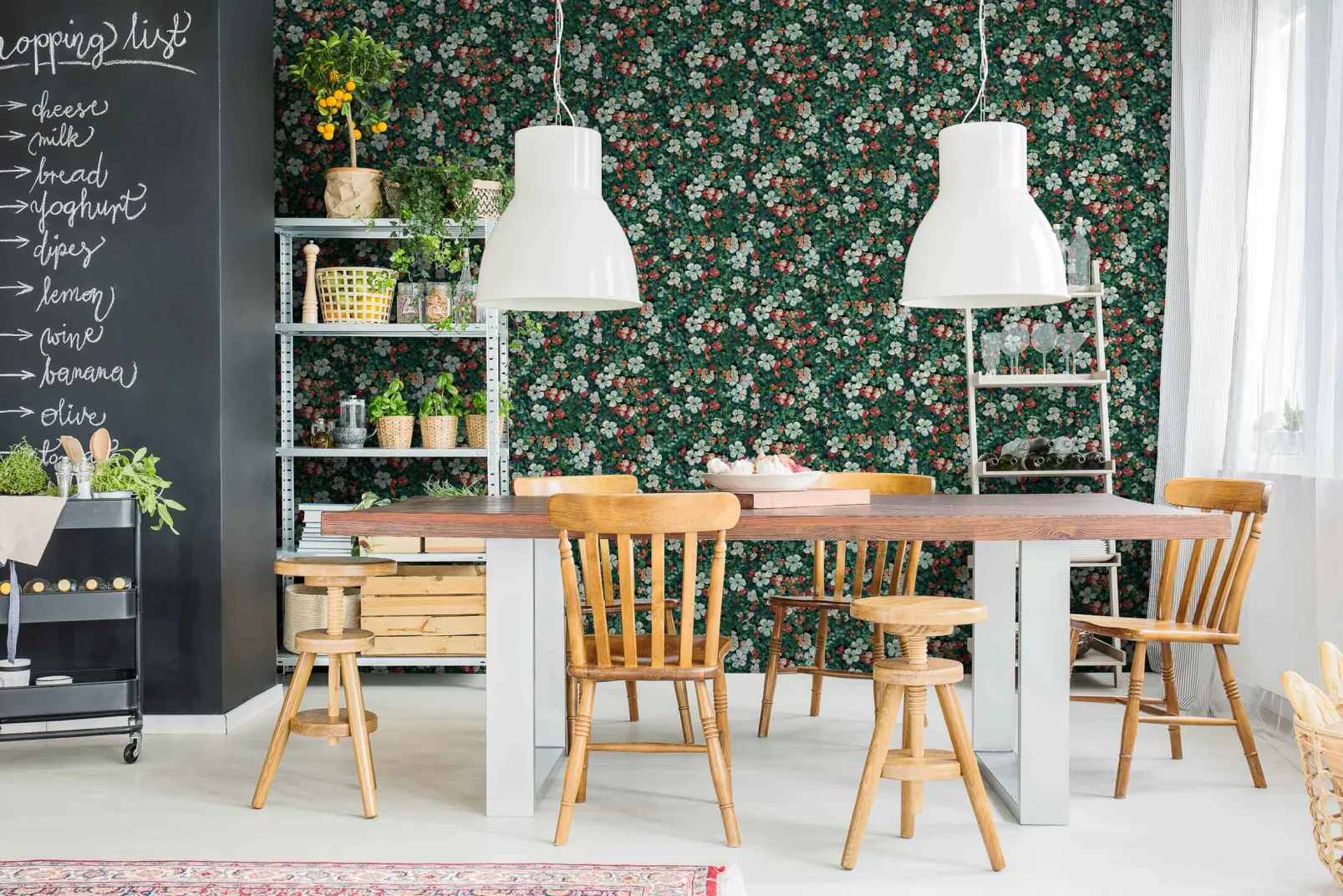 El papel pintado Tapiz Floral Menta de Coordonné es un diseño floral en tonos verdes de la colección Naturae.