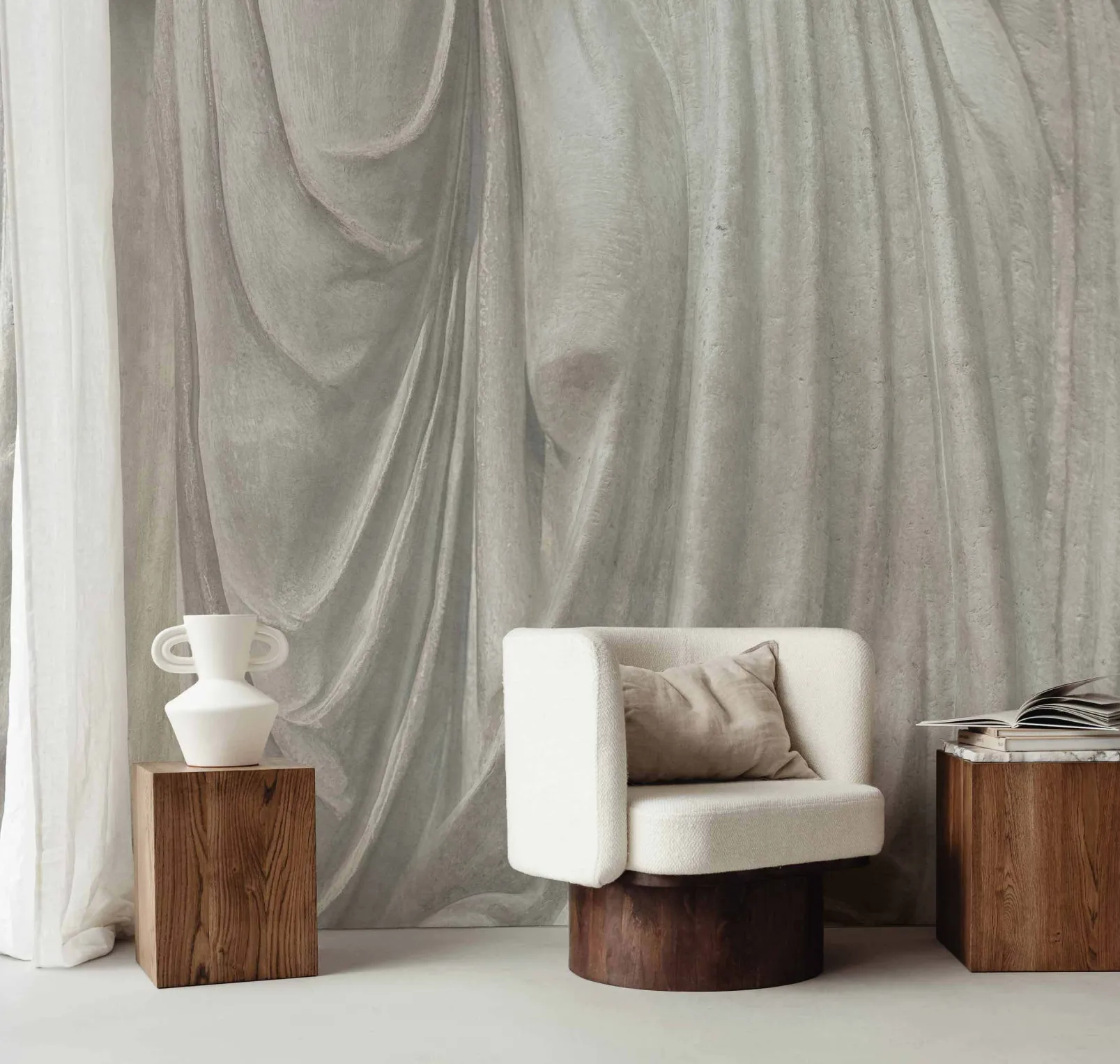 Fold Stone de Coordonné es un papel pintado inspirado en la textura en tonos blanco/gris.