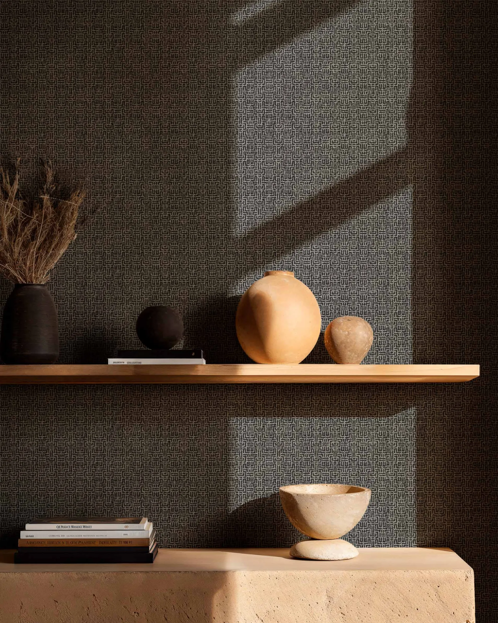 Geometricum Coal de Coordonné es un diseño geométrico en negro de la colección Pompei. Felpudos con diseños geométricos que daban calidez a los fríos suelos de las villas romanas.