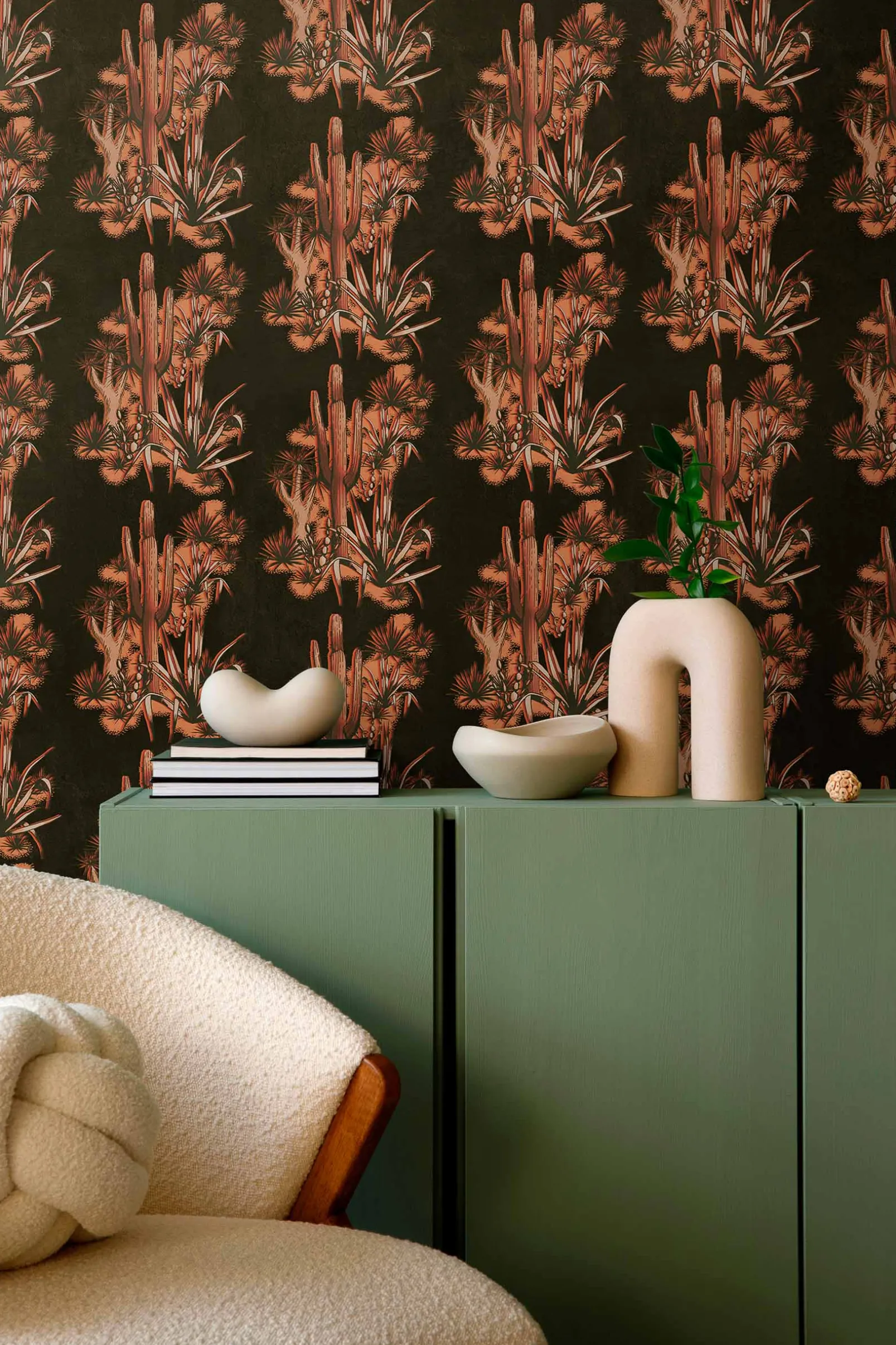 El papel pintado Grand Canyon Black de Coordonné es un diseño vegetal en tonos azules/azules marinos de la colección Central Saint Martins – Rest Time. El Cañón del Colorado y los páramos desérticos me transmiten buenas vibraciones; me dan algo más que buenos recuerdos.