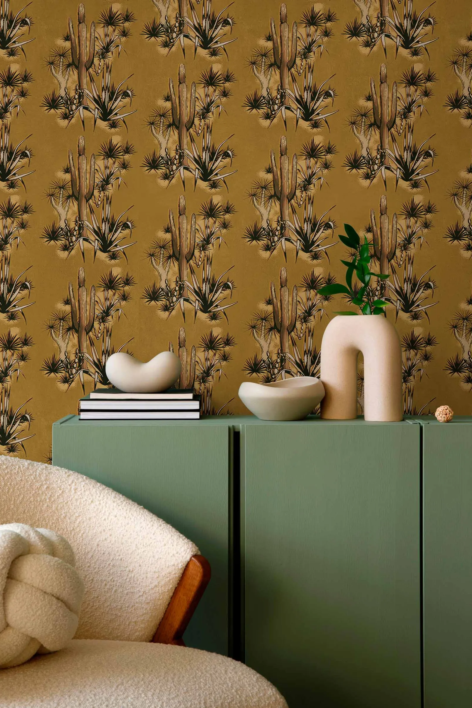 El papel pintado Grand Canyon Curry de Coordonné es un diseño vegetal en tonos amarillo/naranja de la colección Central Saint Martins – Rest Time. El Cañón del Colorado y los páramos desérticos me transmiten buenas vibraciones; me dan algo más que buenos recuerdos.