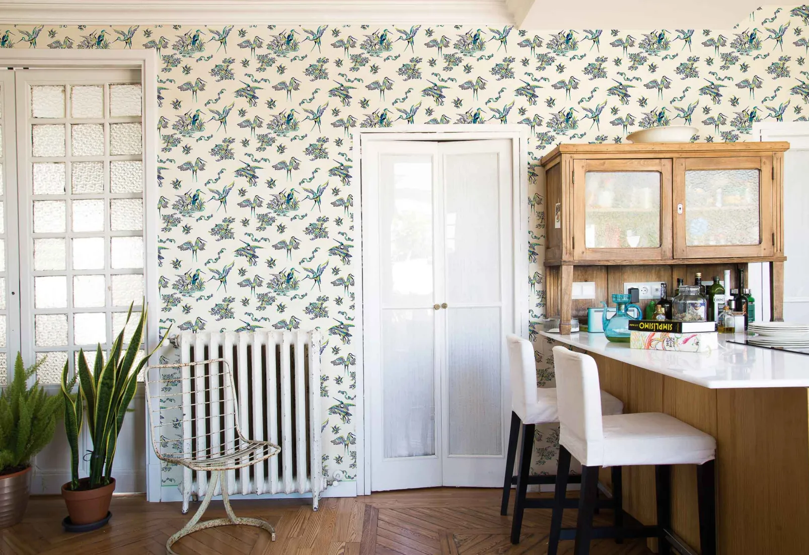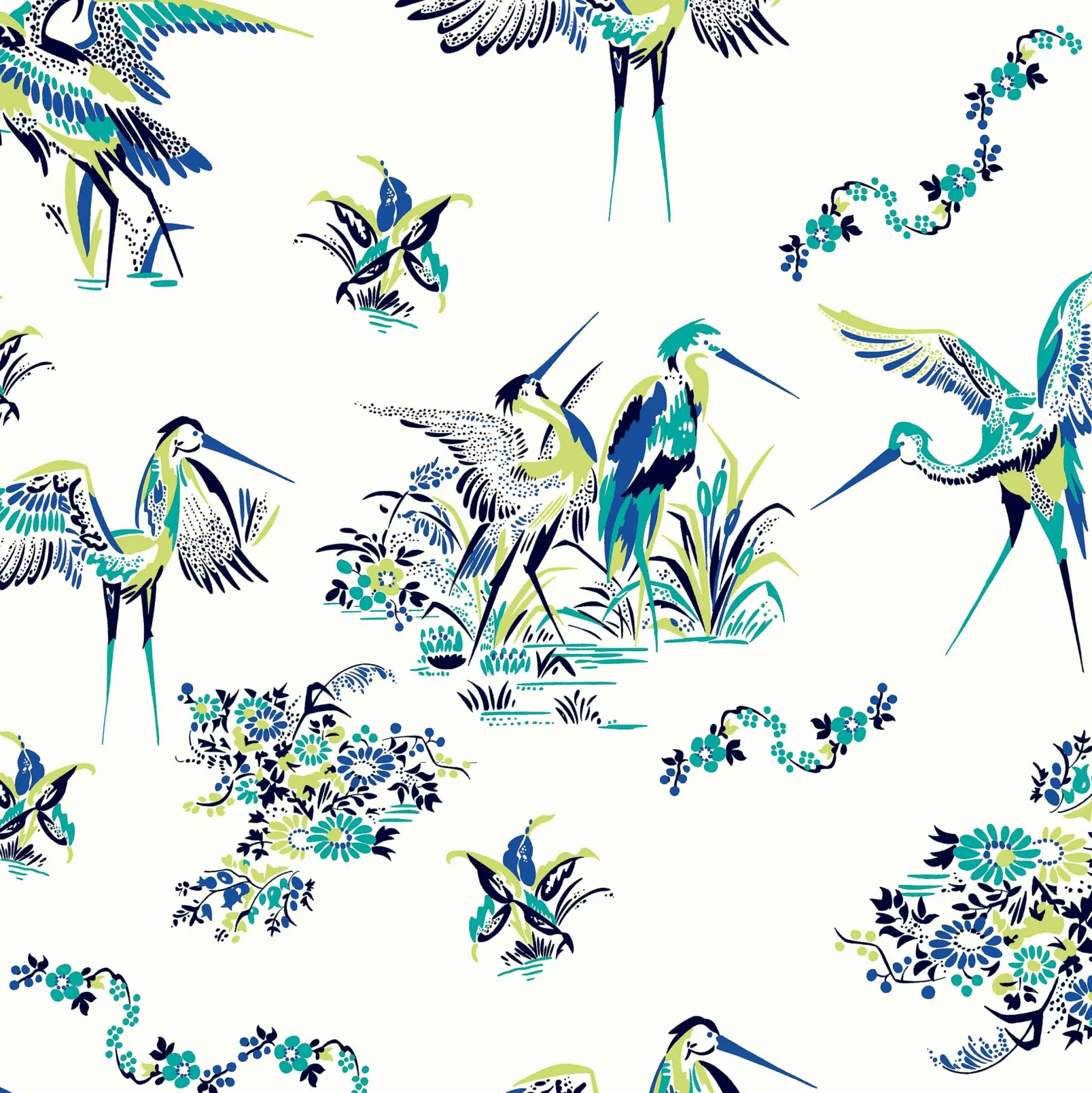 Papel pintado Grullas de papel Azul de Coordonné en un animal diseñado en tonos Blanco/Gris de la colección Anima.