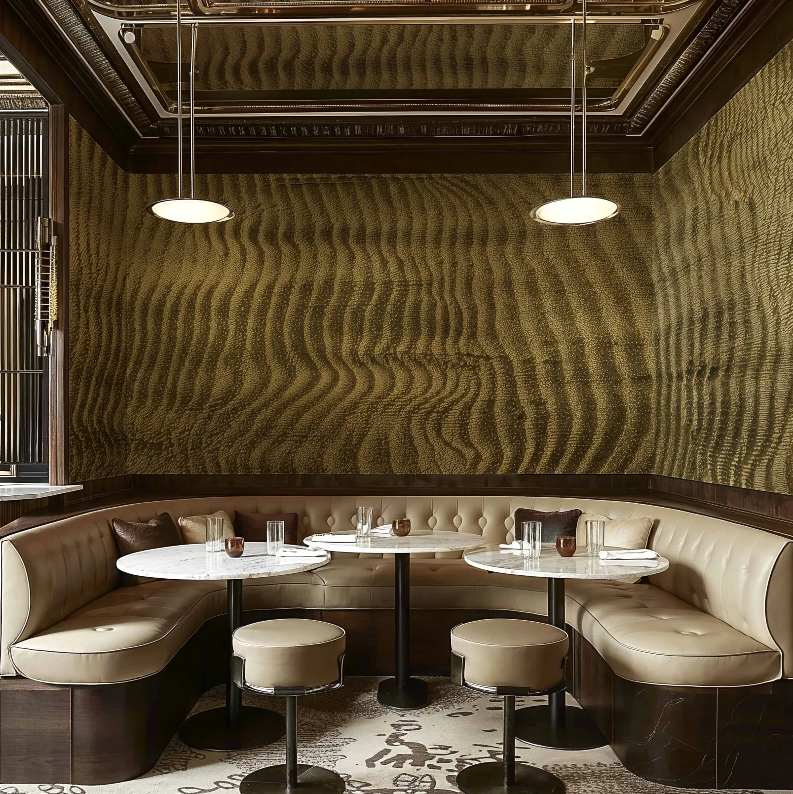 Harenae Gold de Coordonné es un diseño Texturas en amarillo/naranja de la colección Random Metallics II. Crestas de arena ondeando con el viento como un mar dorado.