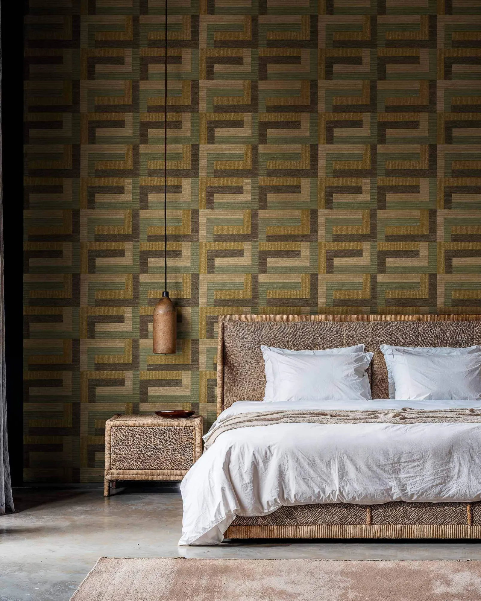 Henna Art Sage de Coordonne es un papel pintado inspirado en la textura en tonos verdes de la colección Bereber. Artesanía dibujada milimétricamente a mano sobre la piel como símbolo de pertenencia.