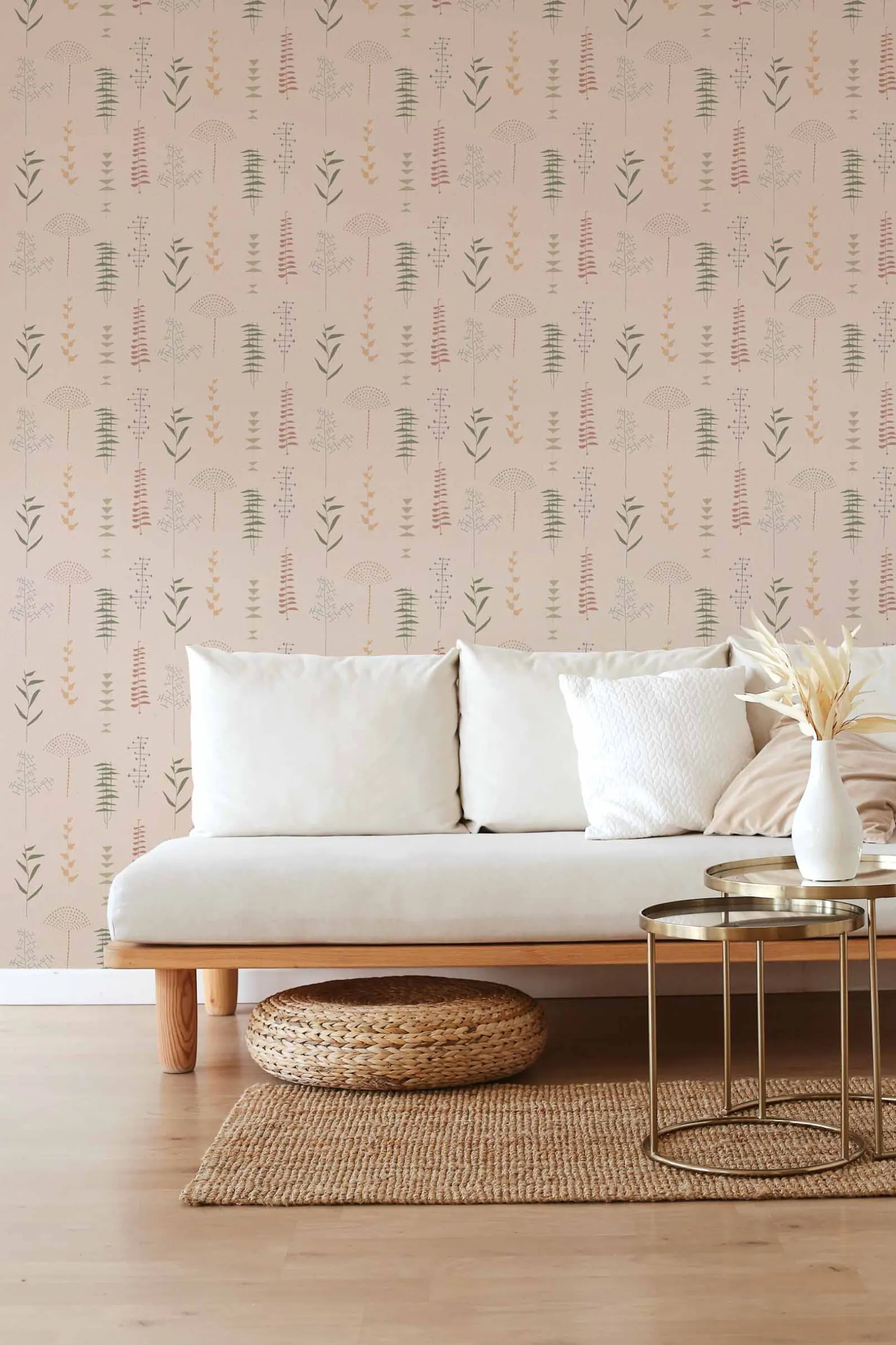 El papel pintado Herbario Rosa de Coordonné es un diseño vegetal en tonos rosa/lila. Conclusiones de una minuciosa investigación sobre especies únicas.