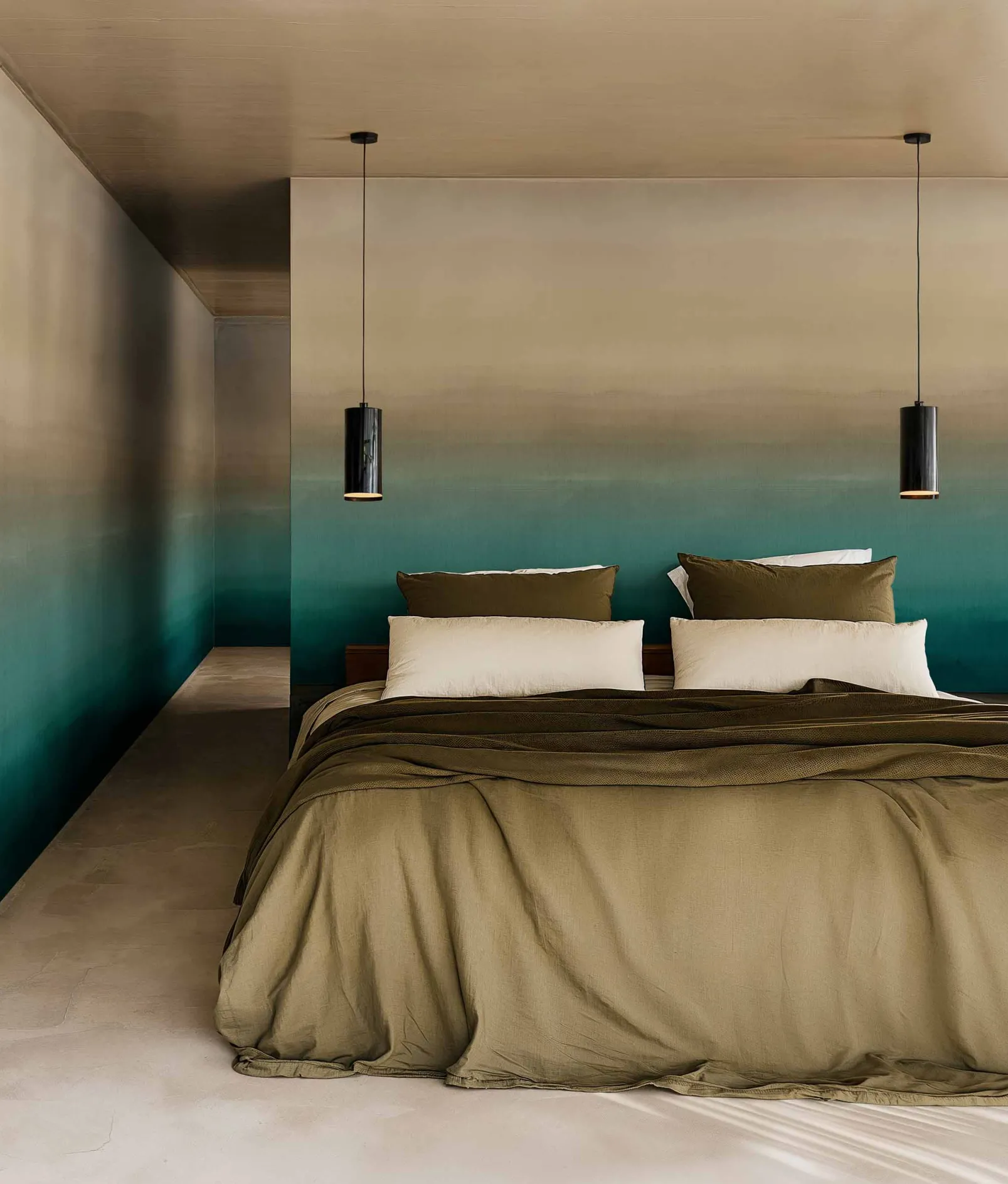 Hinode Nori de Coordonné es un diseño de Texturas en Verde de la colección Shibori. La dulce transición del amanecer.