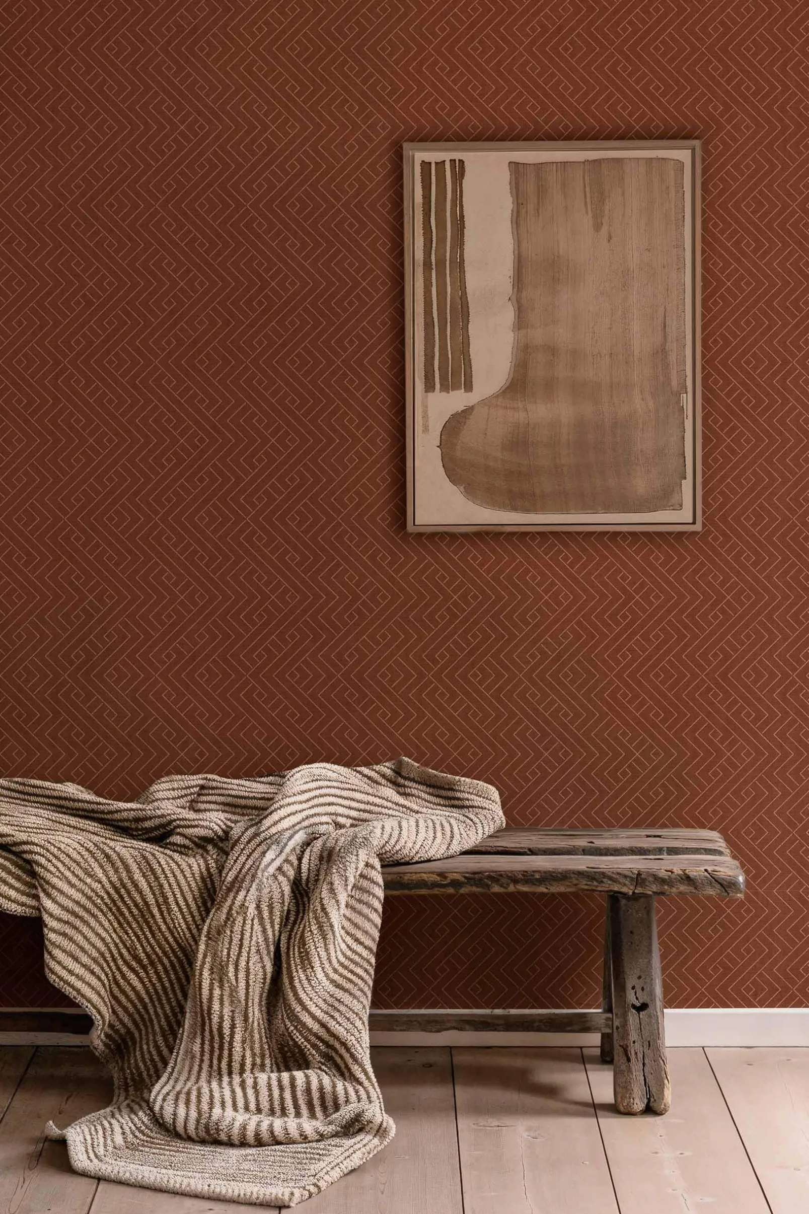 Interwoven Clay de Coordonne es un papel pintado de inspiración geométrica en tonos Rojo/Vino de la colección Lattice Geometrics. Un denso y comptacto entrecruzado.