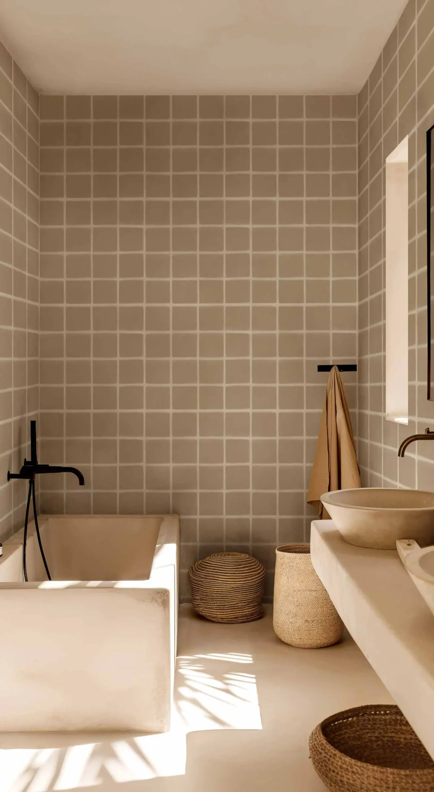 Itajime Jute de Coordonné es un diseño Geométrico en Nude de la colección Shibori. La tranquilidad de una repetición geométrica.