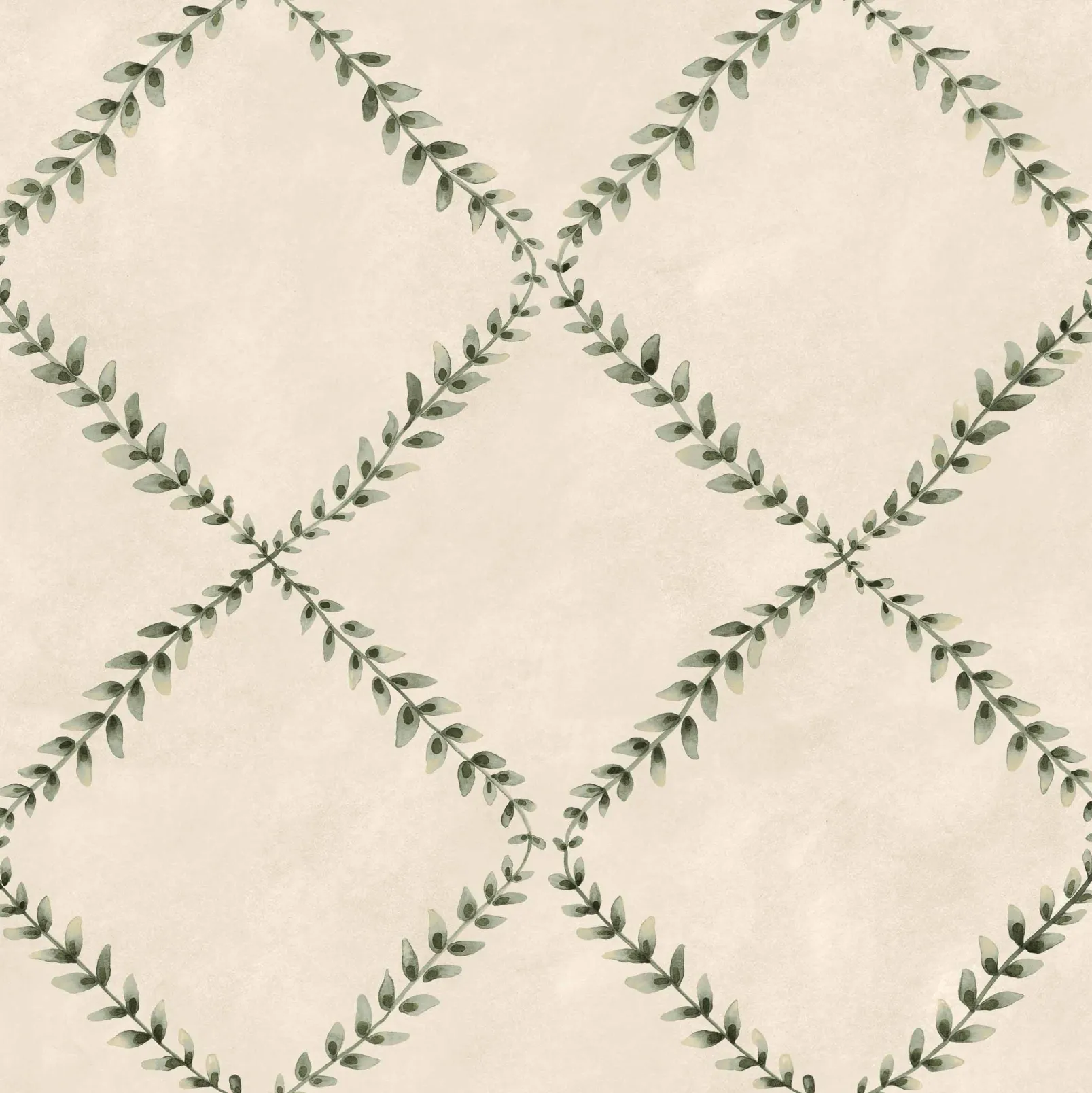 Ivy-Garland Bone de Coordonné es un diseño vegetal en beige/Nude de la colección Cotswolds. Intrincadas guirnaldas de hojas brillantes trepan por las casas de Bibury.