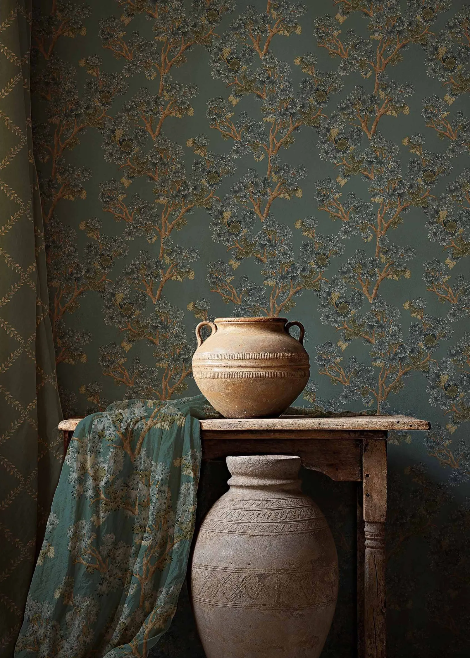 Ivy Garland Sapphire de Coordonné es un diseño vegetal en azul/azul marino de la colección Cotswolds Fabrics. Meticulosas guirnaldas de hojas brillantes que trepan por las casas de Bibury.