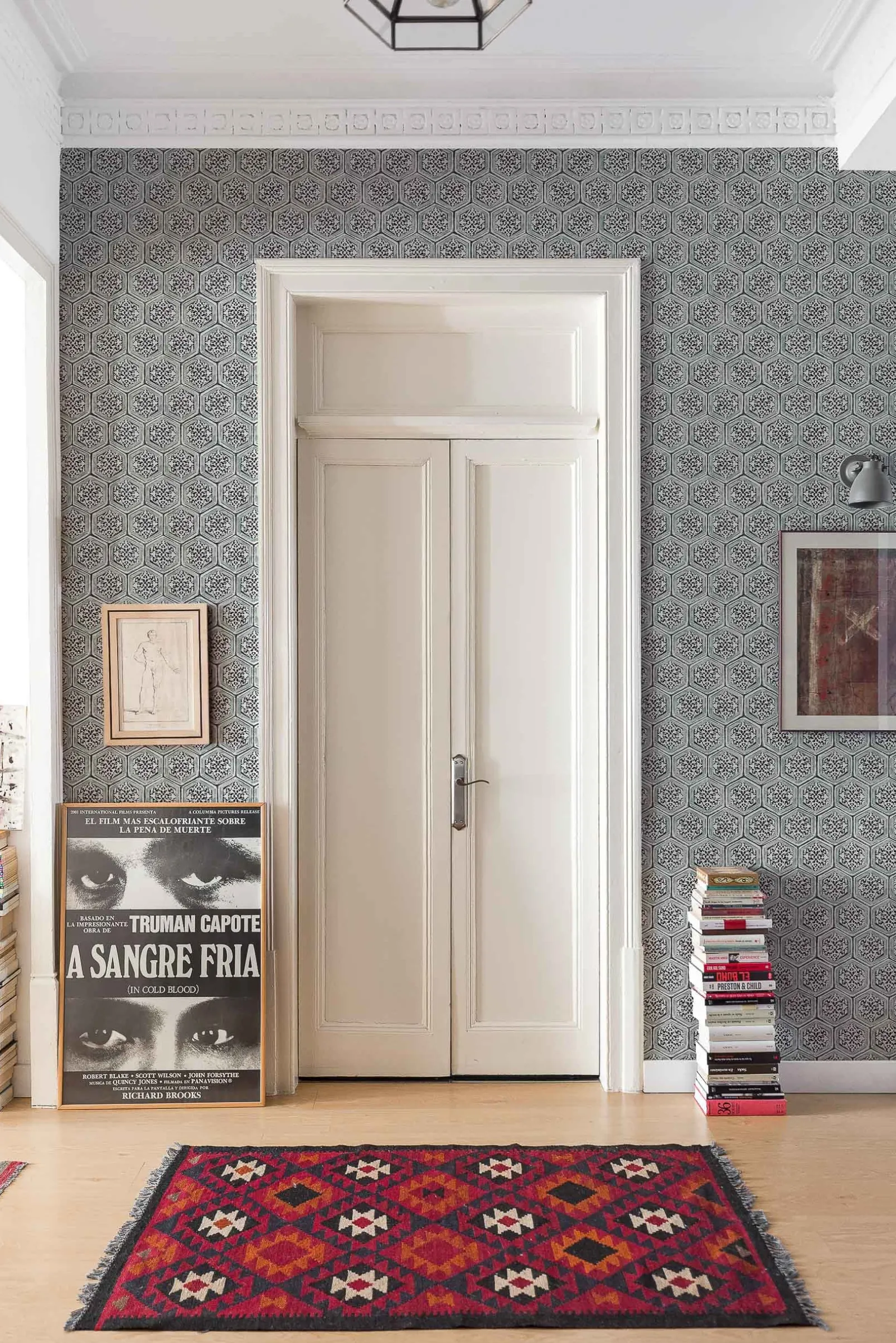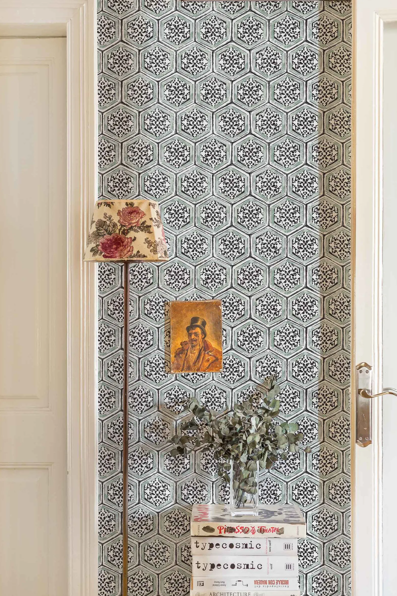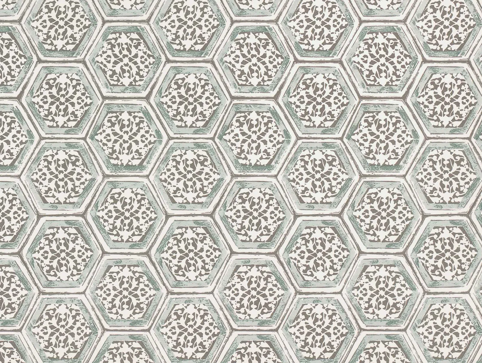 El papel pintado Joyce Forest de Coordonné es un diseño geométrico en tonos verdes de la colección Montmartre.