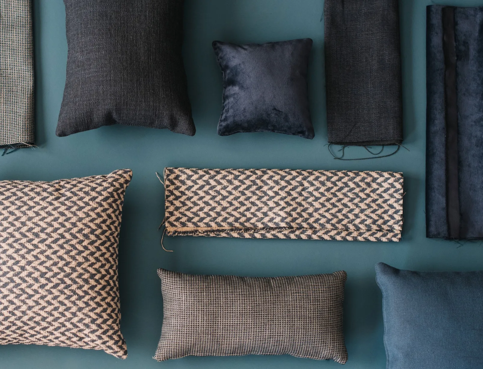 La tela Juhl Sapphire de Coordonné es un diseño de textura en azul/marino de la colección Mid Century.
