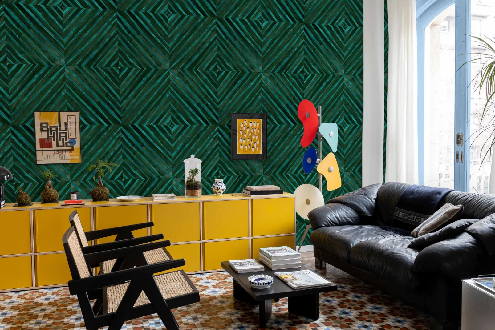 Fibras de caña de bambú dispuestas en forma de caleidoscopio.
