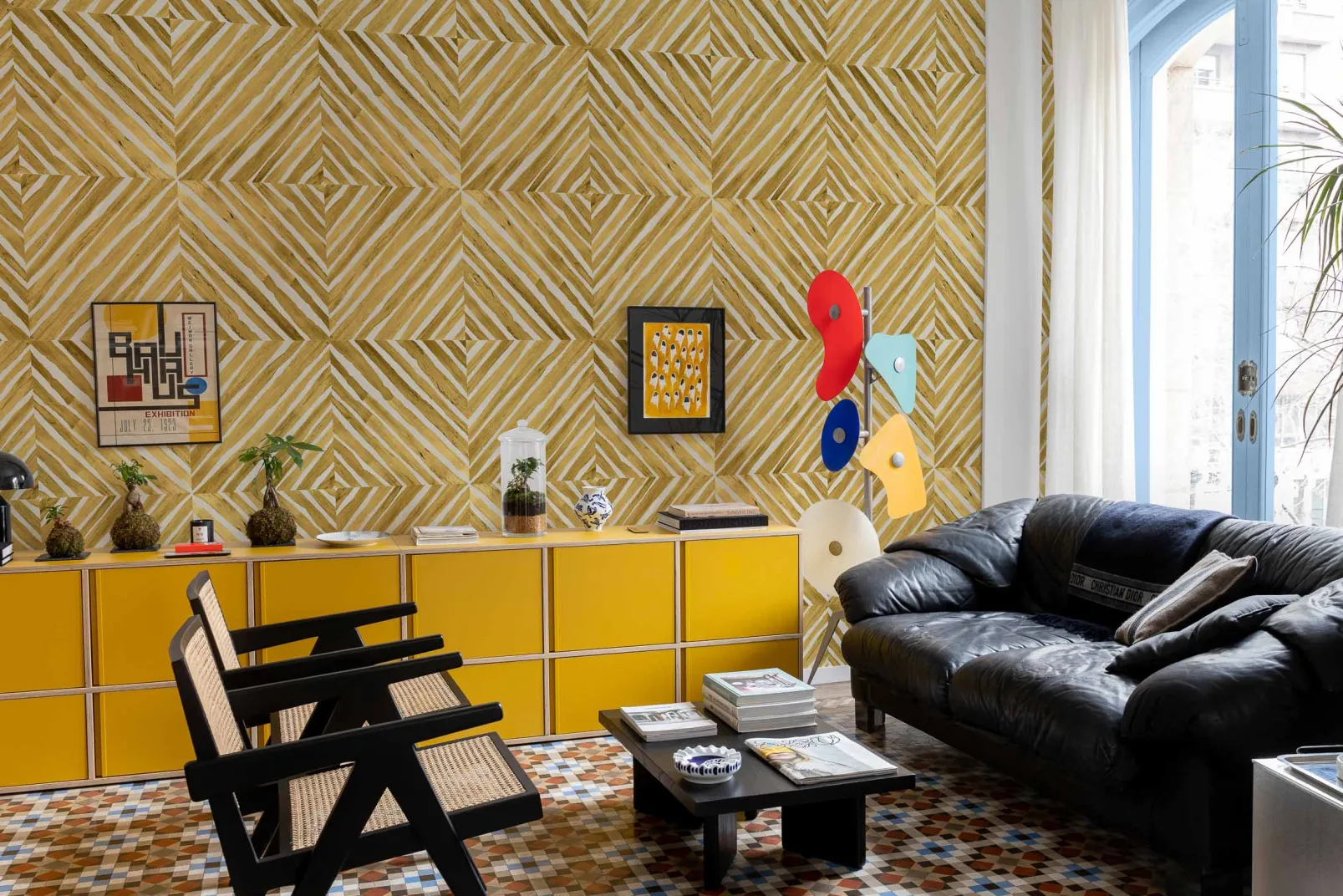 Fibras de caña de bambú dispuestas en forma de caleidoscopio.