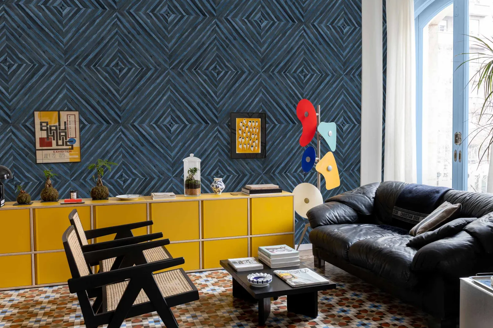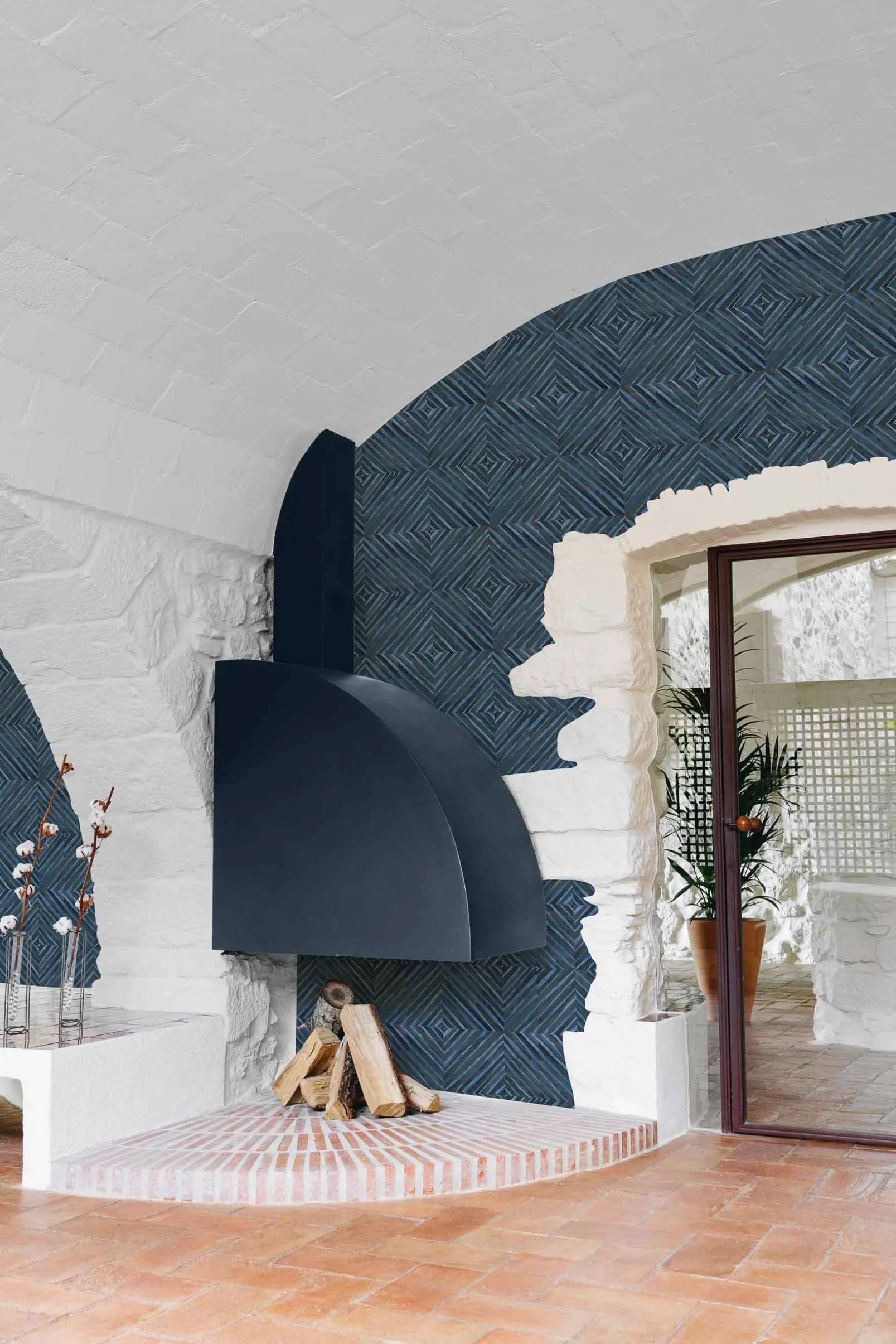 Fibras de caña de bambú dispuestas en forma de caleidoscopio.