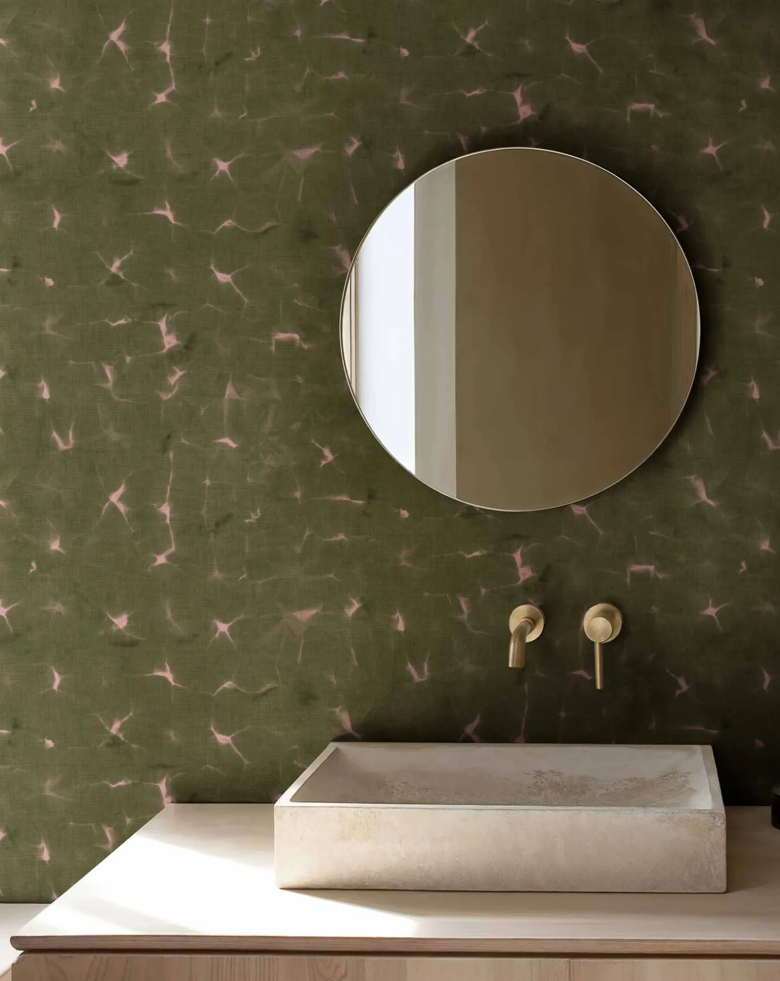 Kanoko Moss de Coordonné es un diseño Texturas en verde de la colección Shibori. Formas enigmáticas que emergen de la niebla.