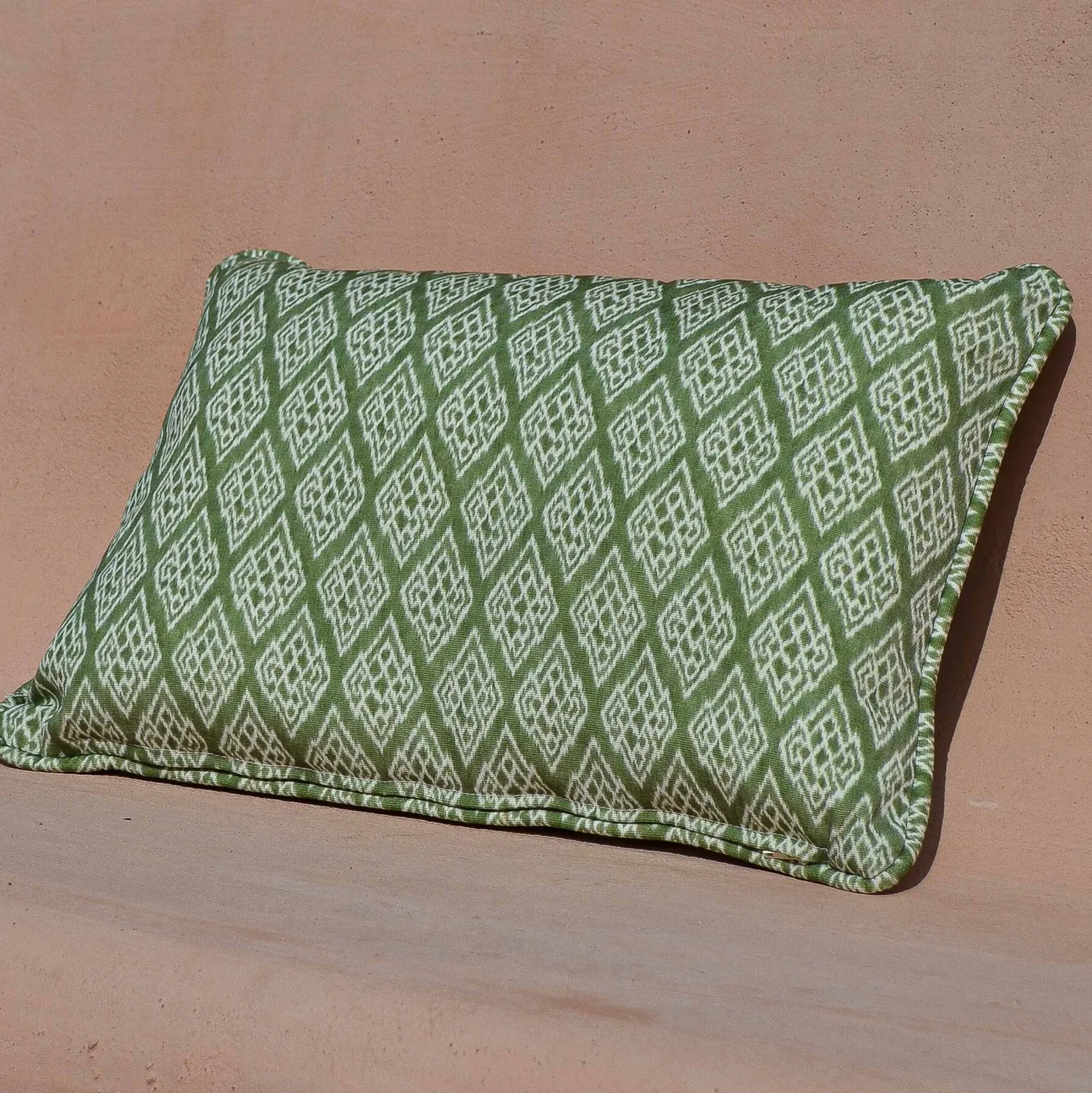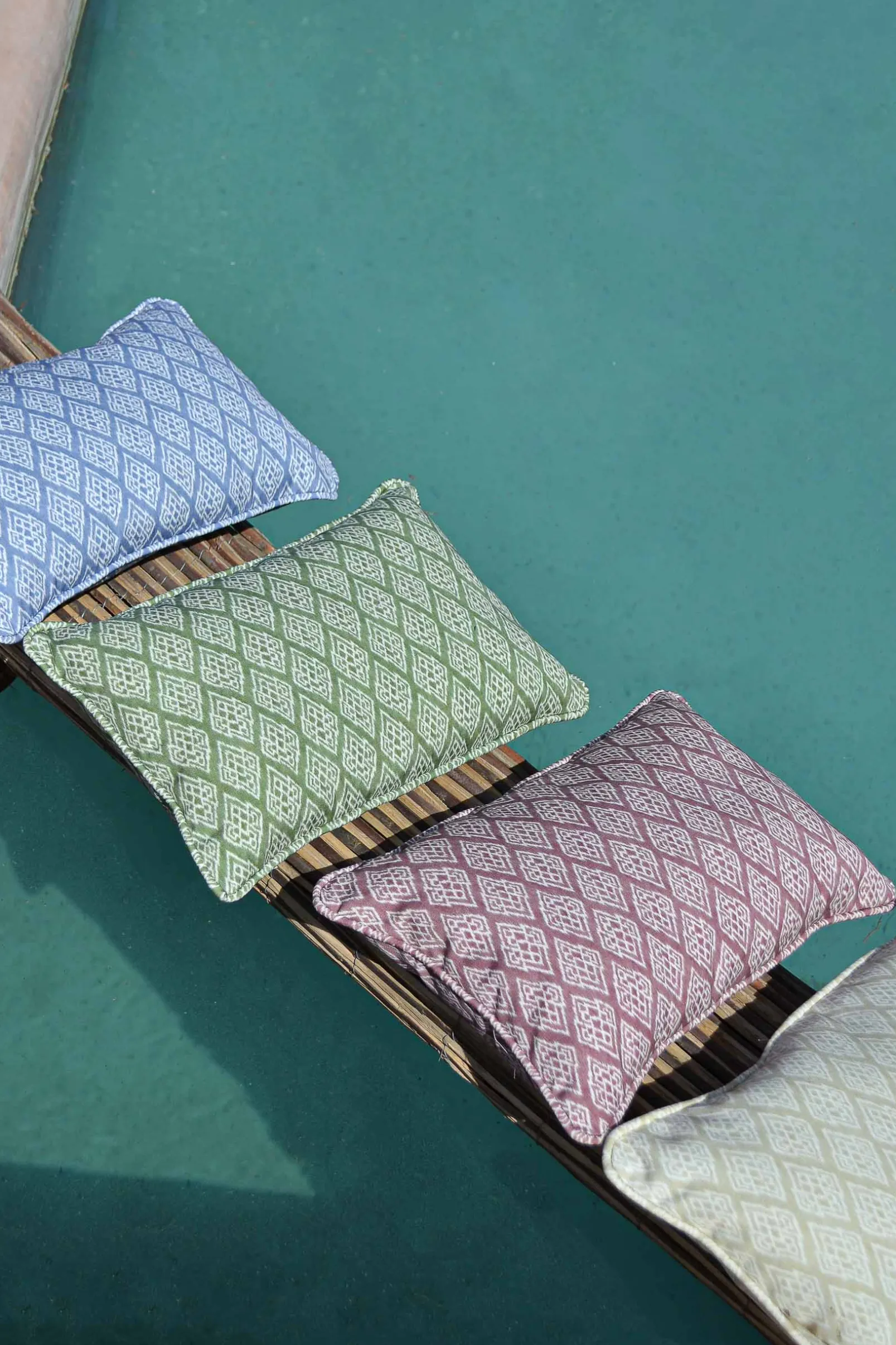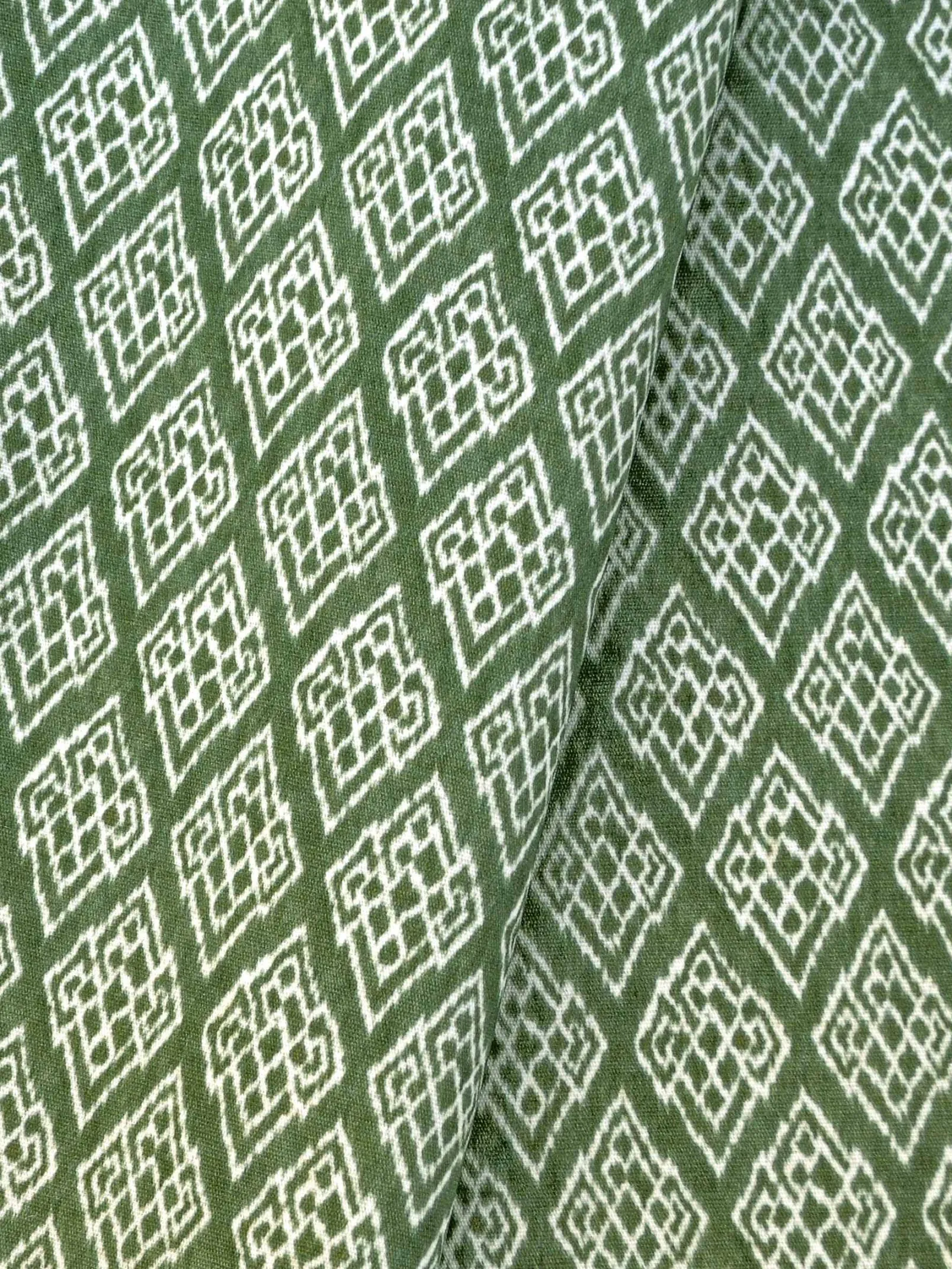 Kasuri Green de Coordonné es un diseño geométrico en tonos verdes de la colección Ikart Outdoor. La elegancia difuminada o Kasureru de los motivos japoneses.