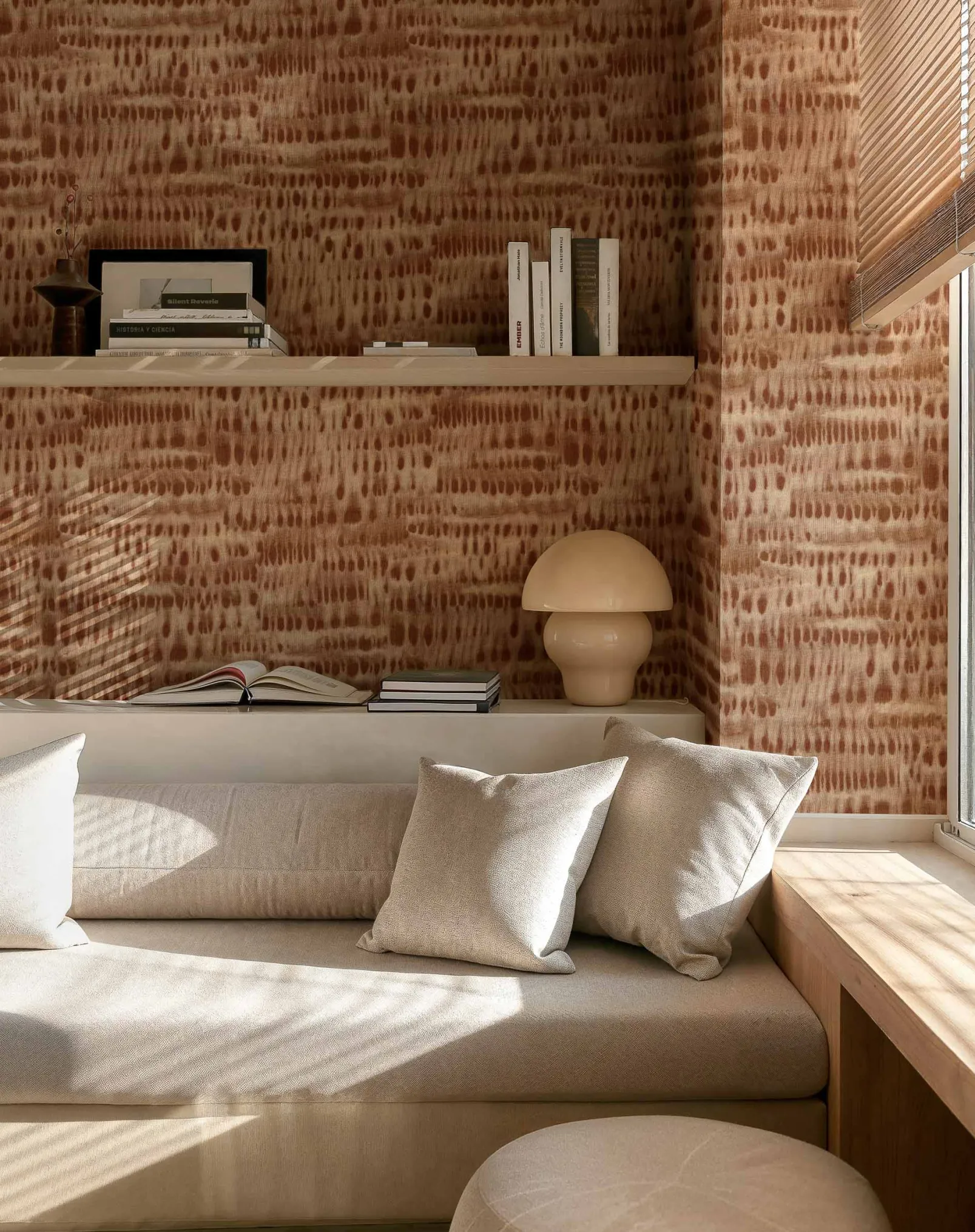 Kawari Amber de Coordonné es un diseño Texturas en amarillo/naranja de la colección Shibori. La fuerza implacable del universo animal.