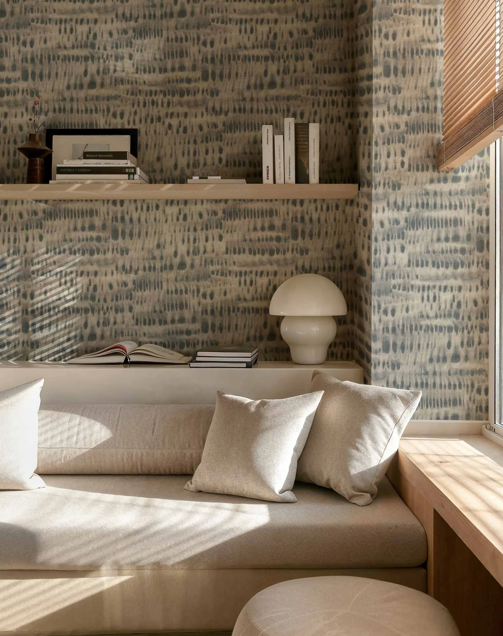 Kawari Indigo de Coordonné es un diseño Texturas en azul/azul marino de la colección Shibori. La fuerza implacable del universo animal.