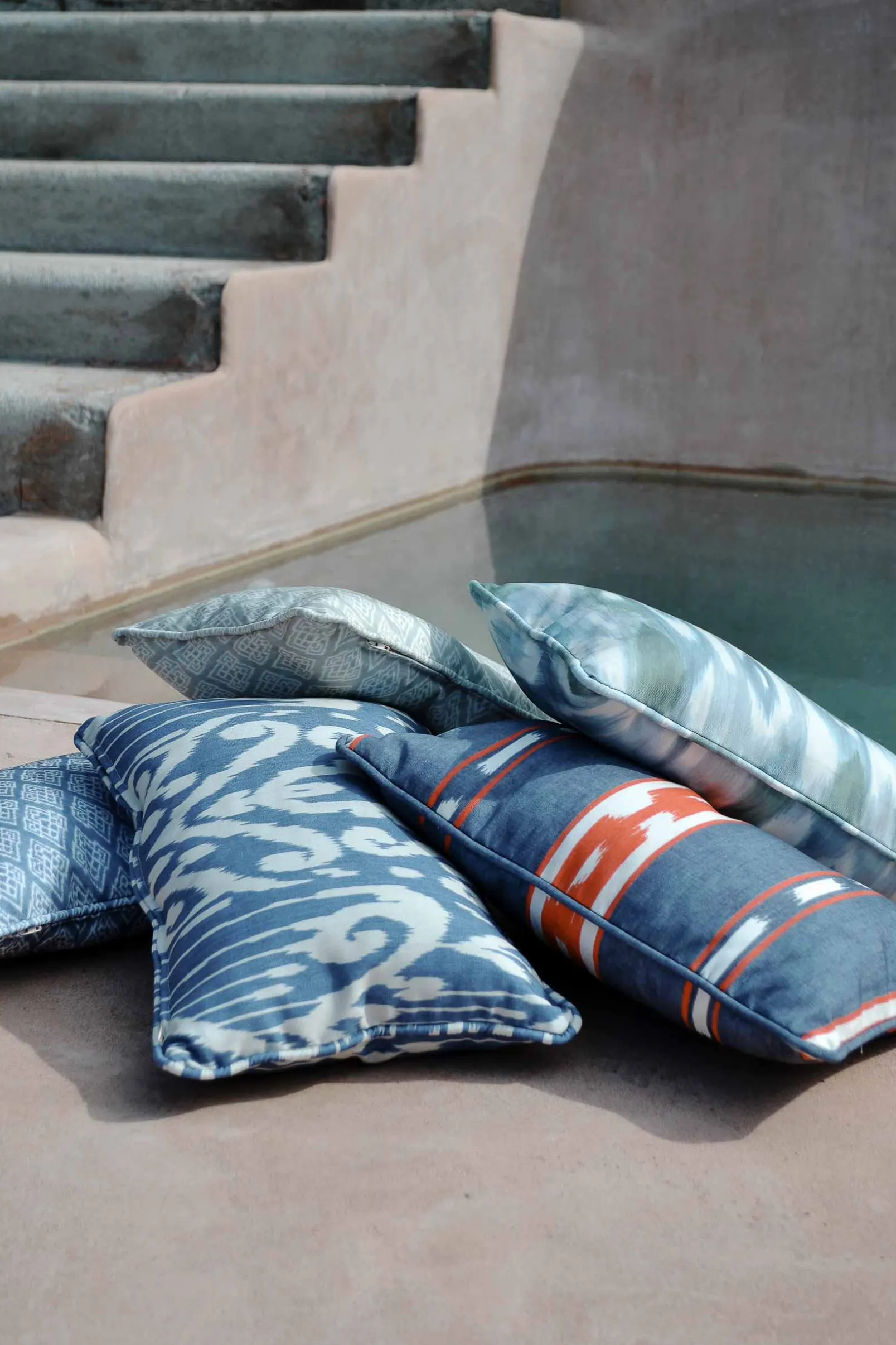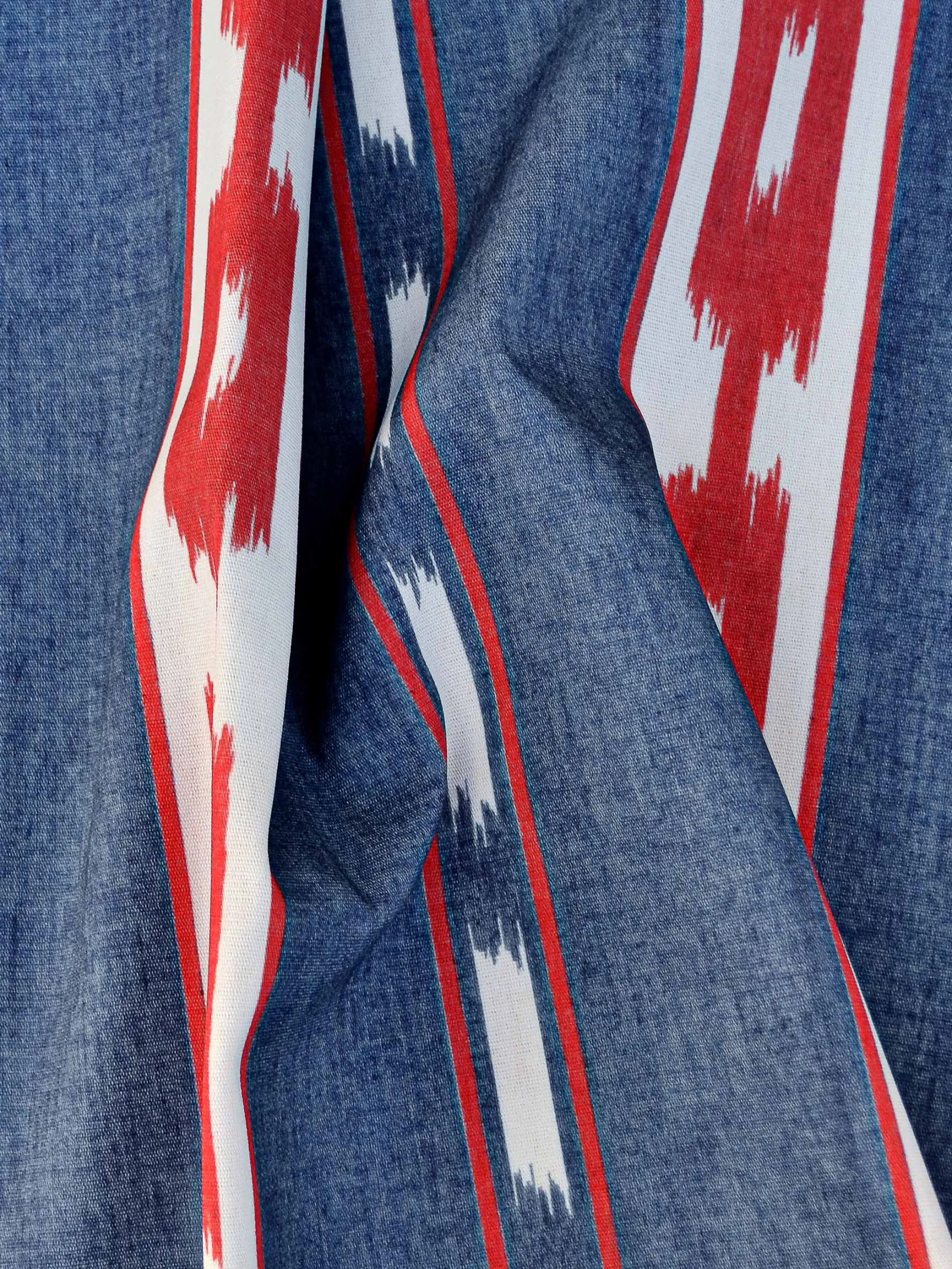 El Kente Blue de Coordonné es un diseño de rayas en tonos azules/azules marinos de la colección Ikart Outdoor. Túnicas confeccionadas para la realeza Akan con tiras de algodón.