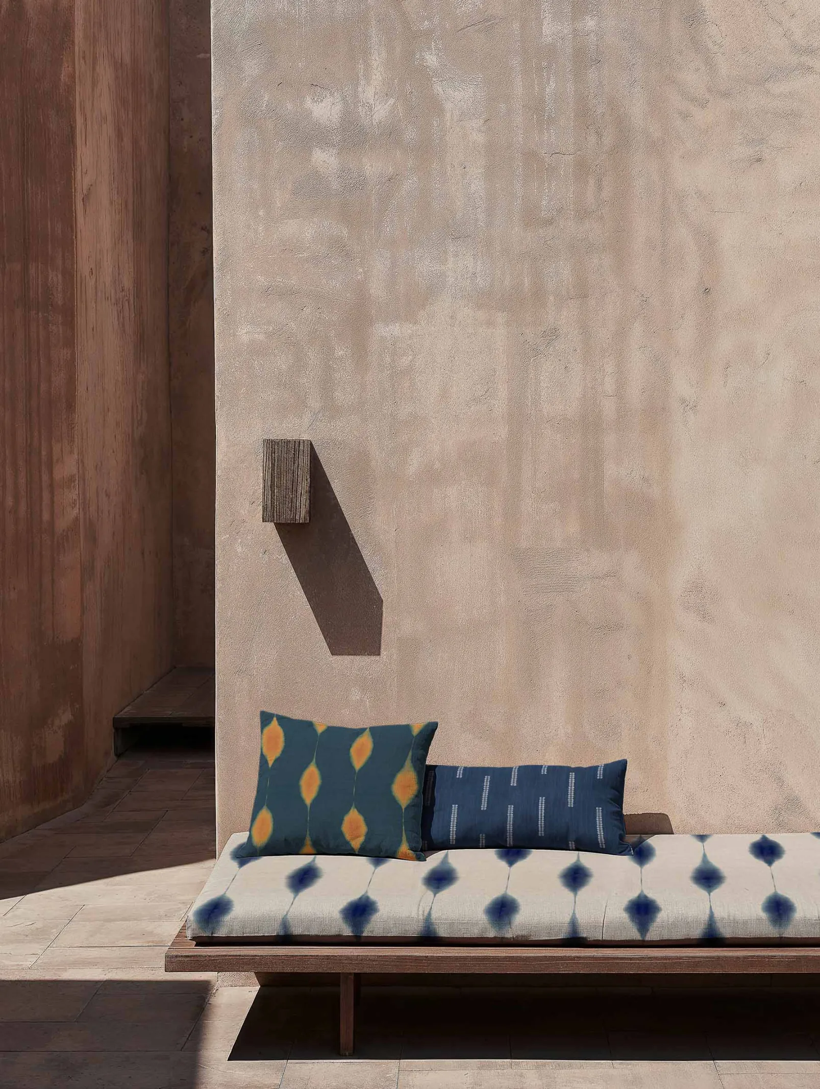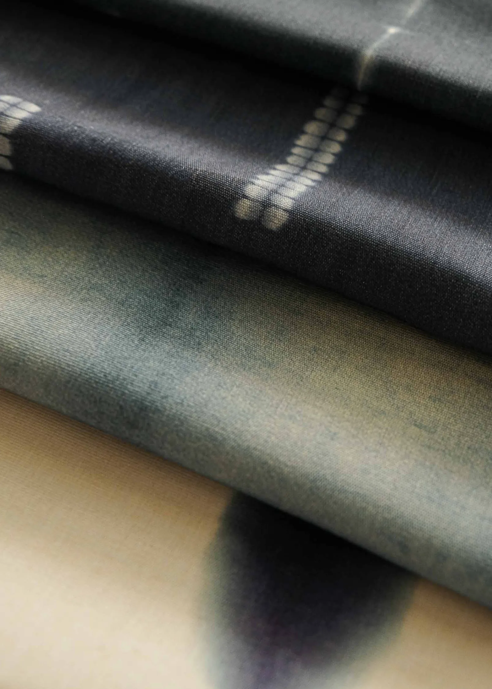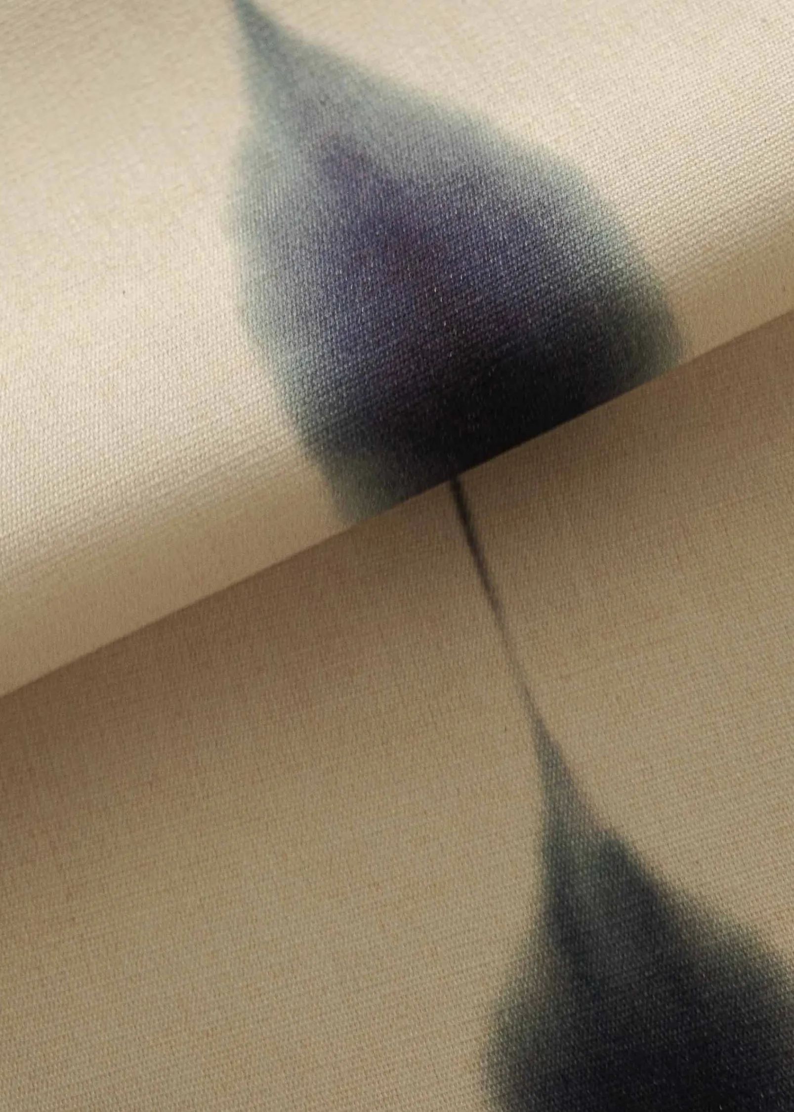 Kumo Indigo de Coordonné es un diseño de Texturas en Blanco/Gris de la colección Shibori Outdoor. Es la impresión del tiempo impresa en tela con certificaciones para uso exterior.