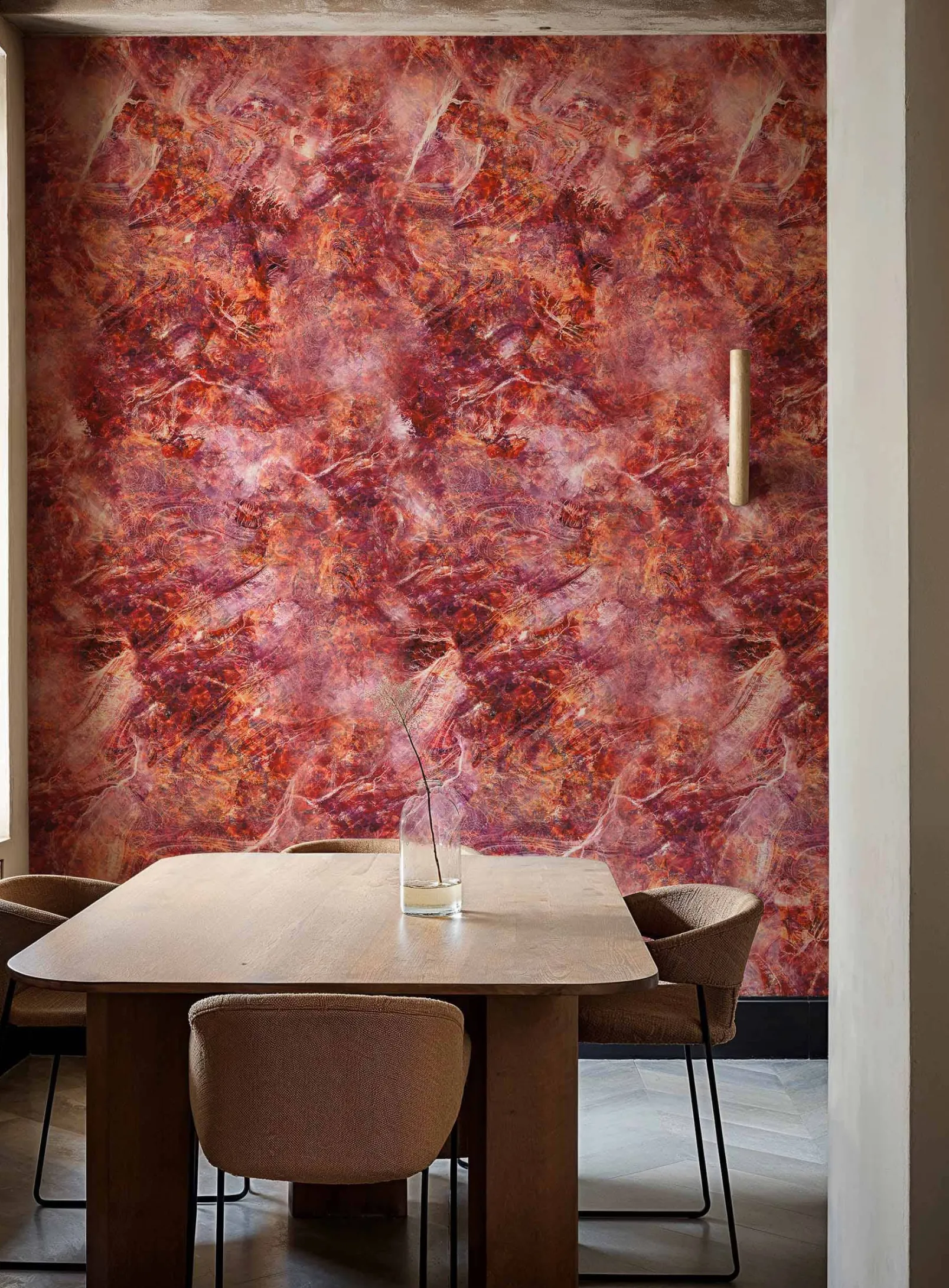 El papel pintado Lapislatzuli Rouge de Coordonné es una textura diseñada en tonos rosa/lila de la colección Essentia 15/5.