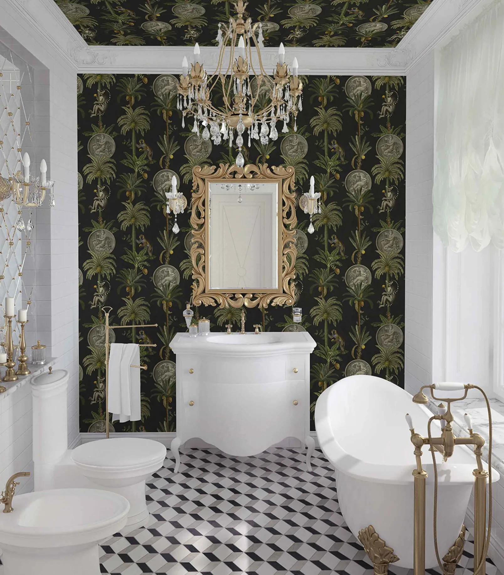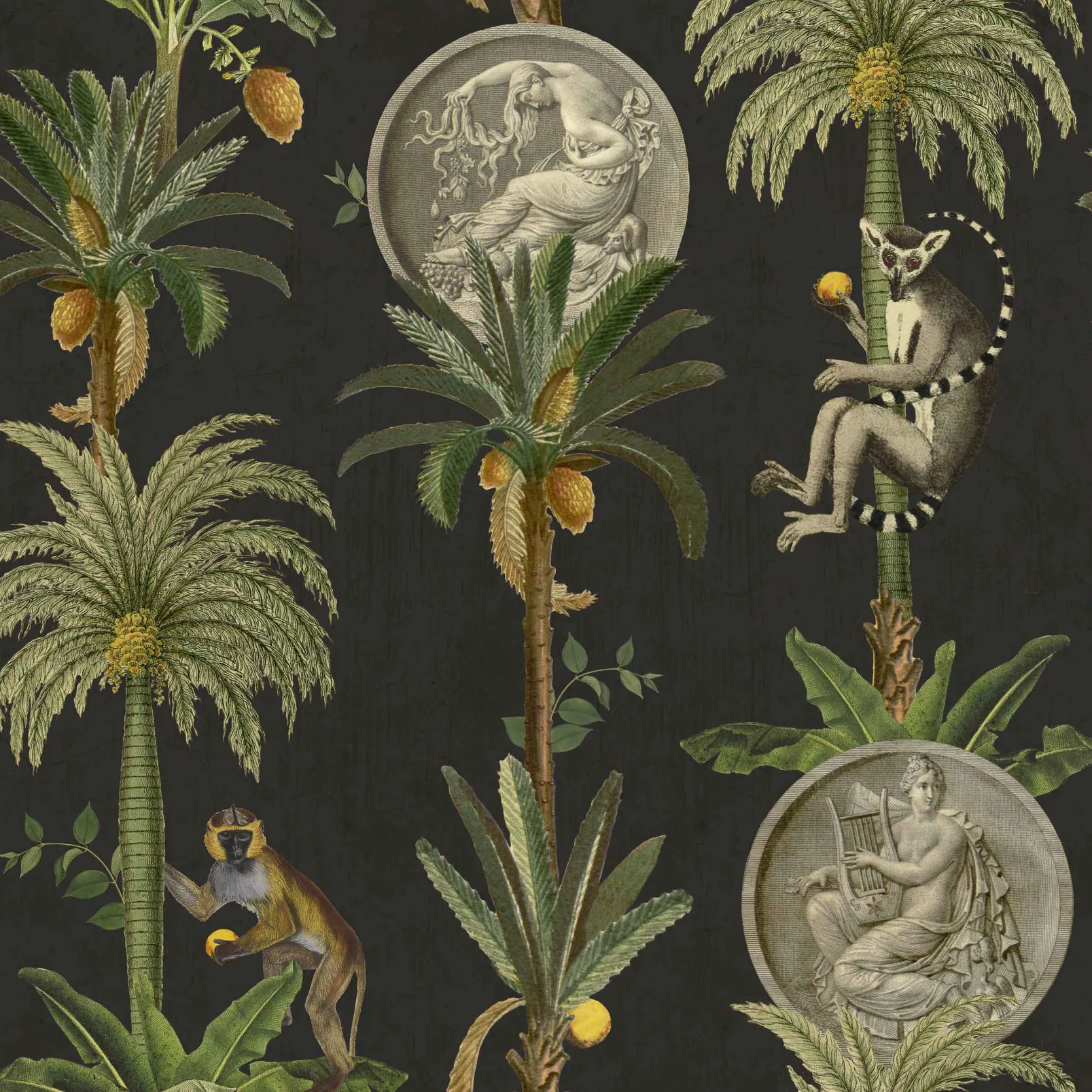 El papel pintado Lémurs Eclipse de Coordonné es un diseño en tonos negros de la colección Maximalism.