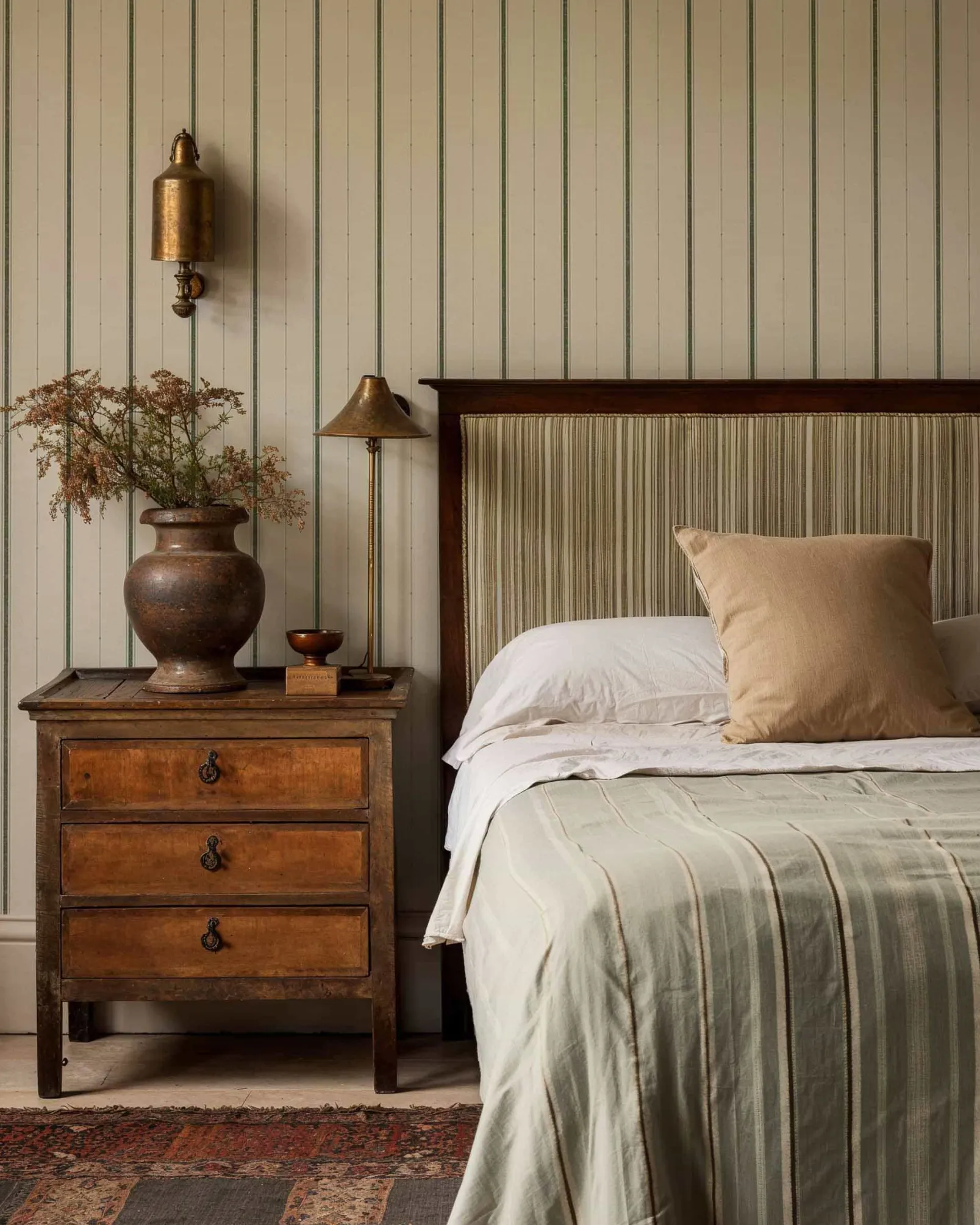 Lineal Green de Coordonné es un papel pintado inspirado en las rayas en color Verde. Glamurosas rayas victorianas que se elevan sin límites.