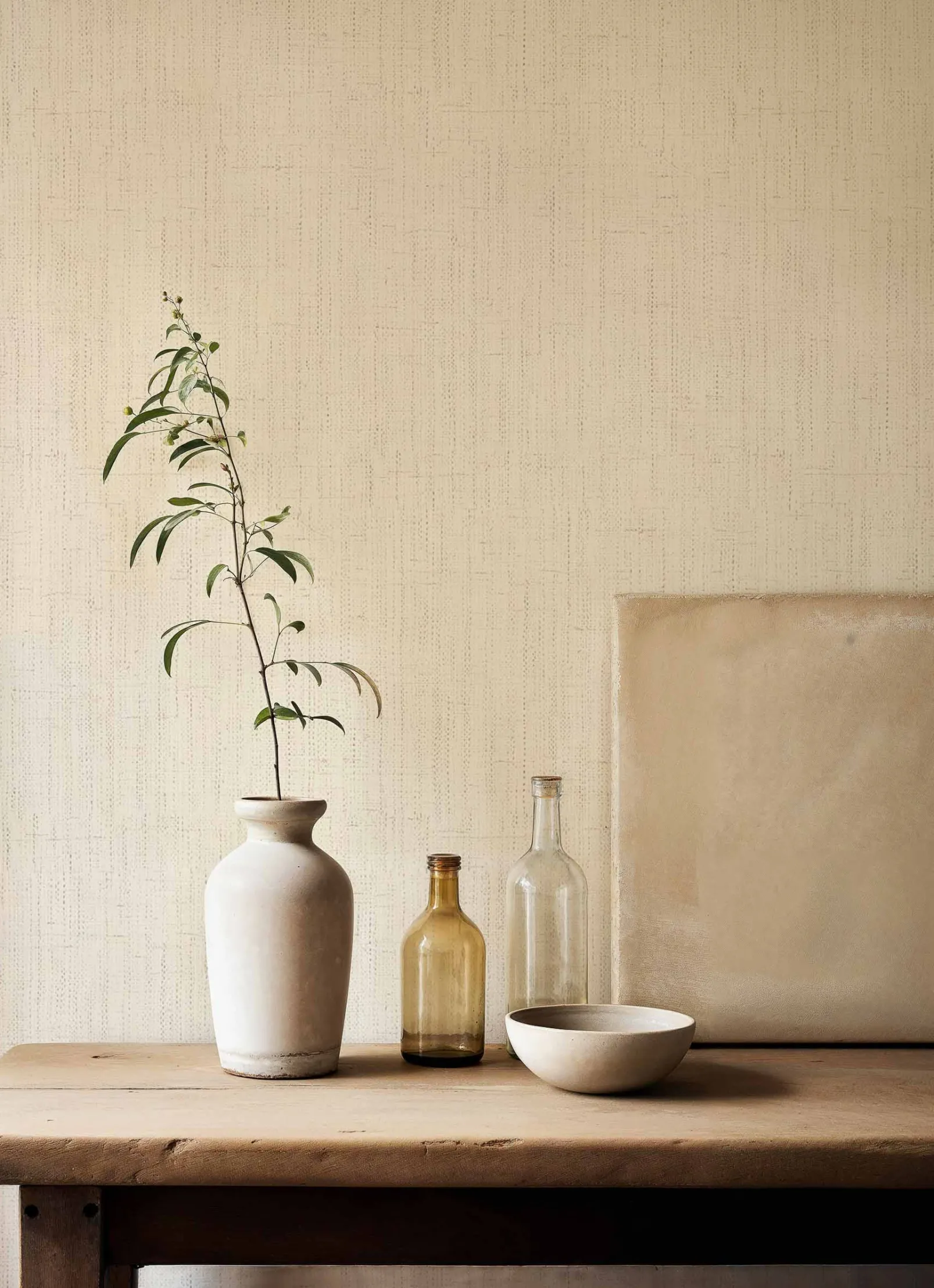 Lino 0 de Coordonné es un diseño liso en blanco/gris de la colección Tactus. Estructura reticular de fibras textiles.