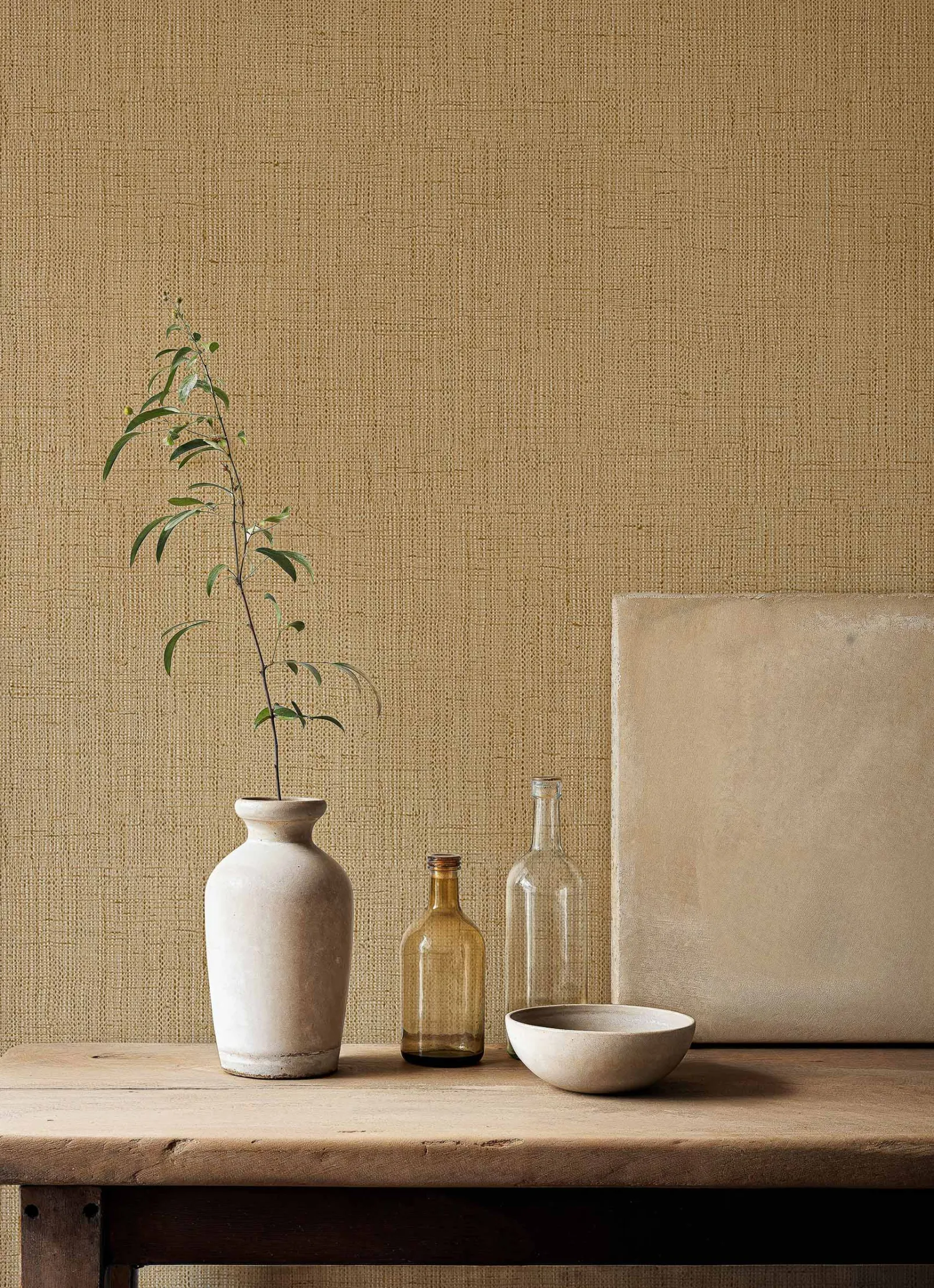Lino 5 de Coordonné es un diseño liso en Beige/Nude de la colección Tactus. Estructura reticular de fibras textiles.