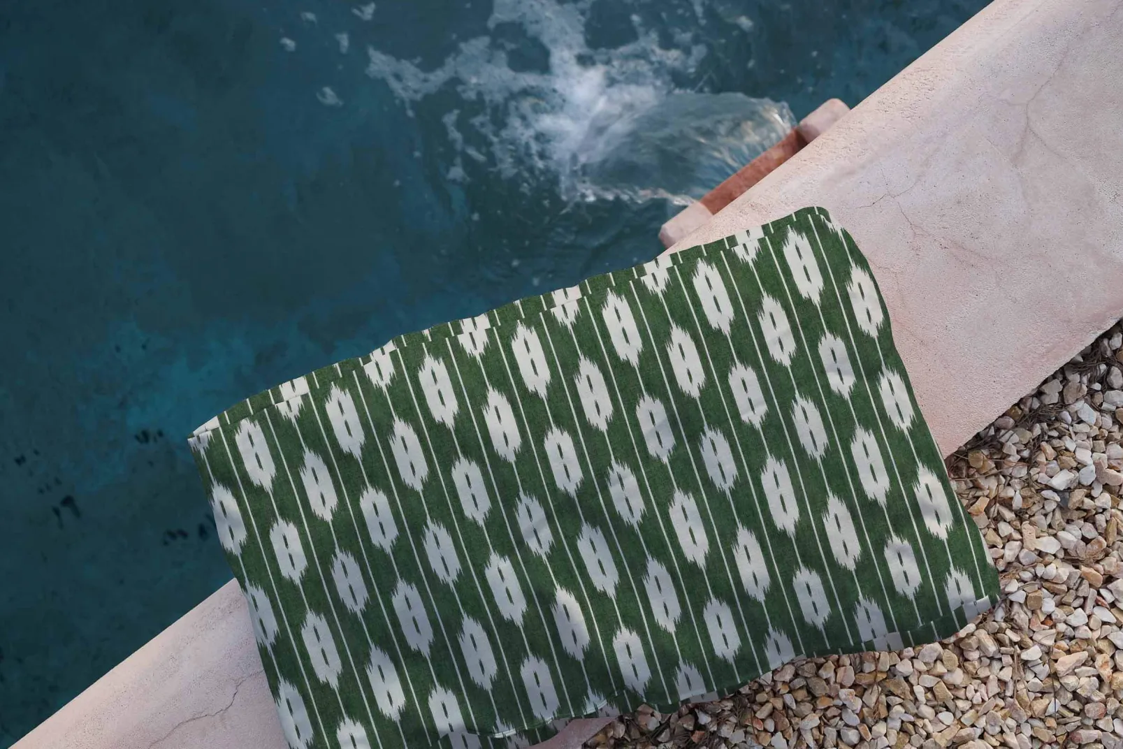 Lengües Green de Coordonné es un diseño inspirado en Texturas en Verde de la colección Ikart Outdoor II. Lenguas infinitas en colores mediterráneos que irradian la esencia de las Baleares.