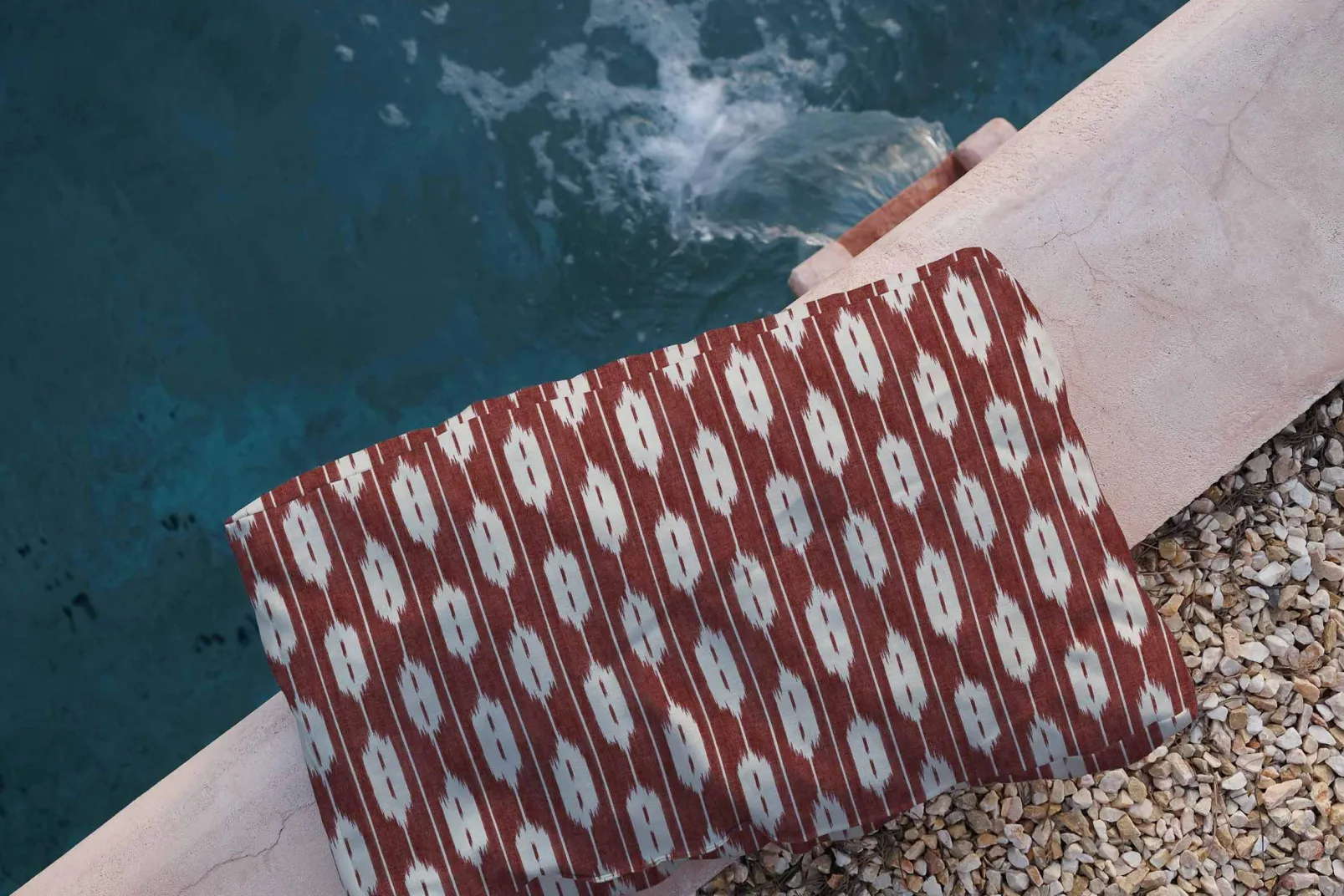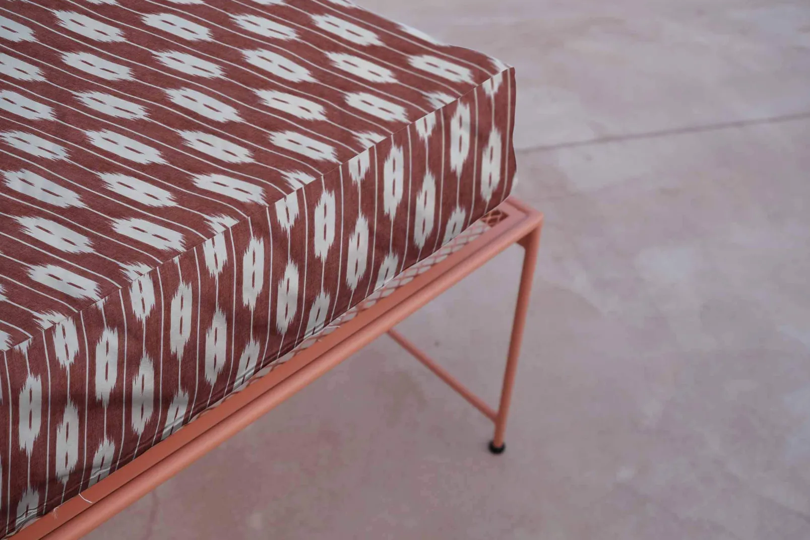 Llengües Wine de Coordonné es un diseño inspirado en Texturas en Rojo/Vino de la colección Ikart Outdoor II. Lenguas infinitas en colores mediterráneos que irradian la esencia de las Baleares.