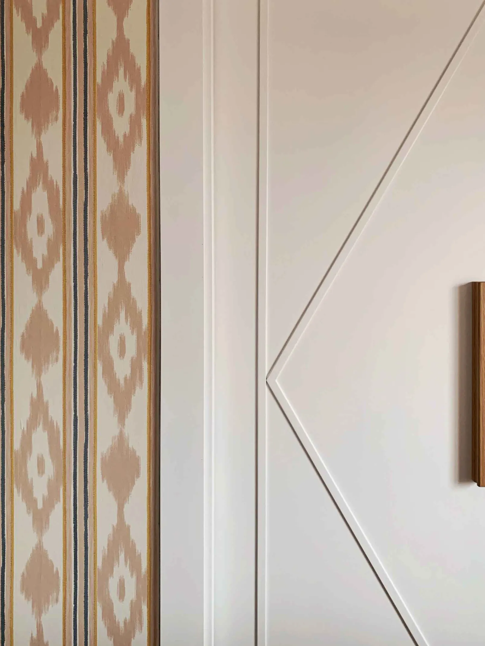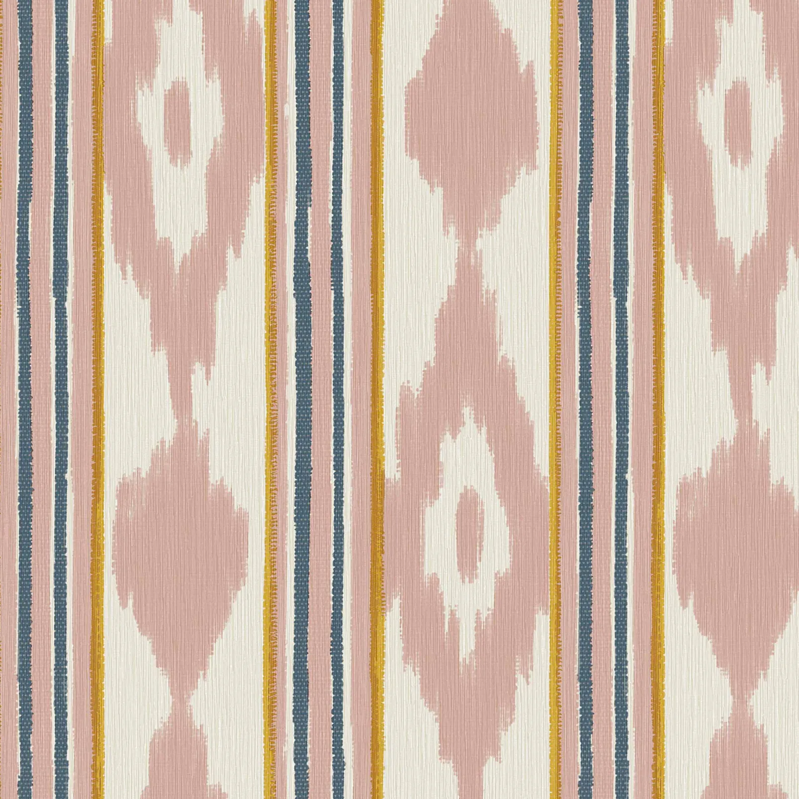 El papel pintado Lloseta Peach de Coordonné es un diseño de rayas en tonos rosa/lila de la colección Mallorca.
