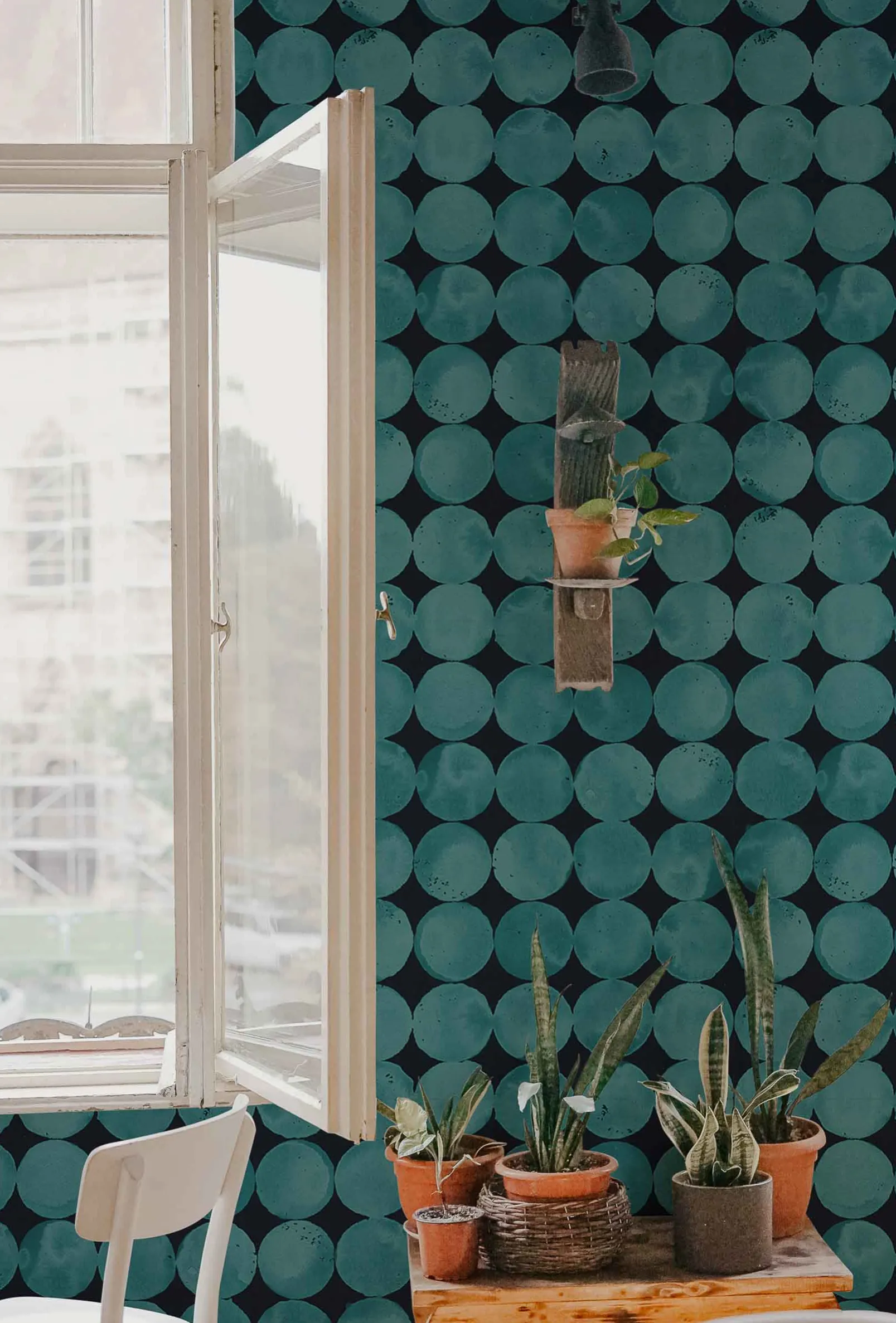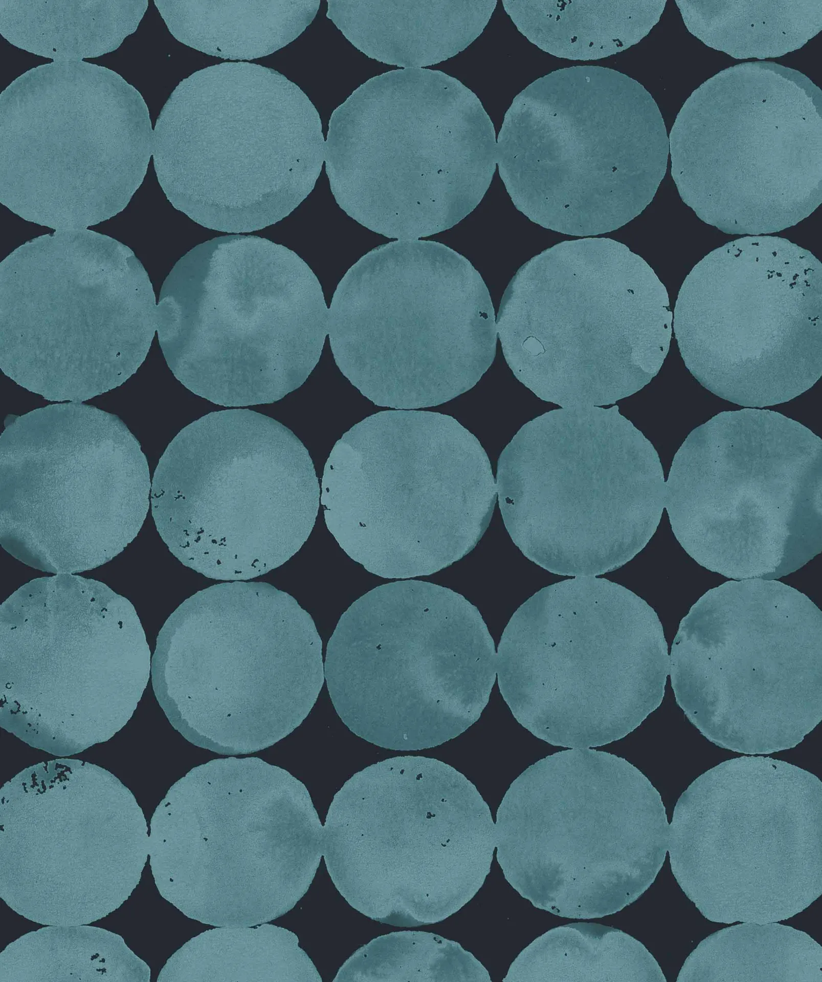 El papel pintado Luna Craters Aqua de Coordonné es un diseño geométrico en color azul/marino de la colección Geo.