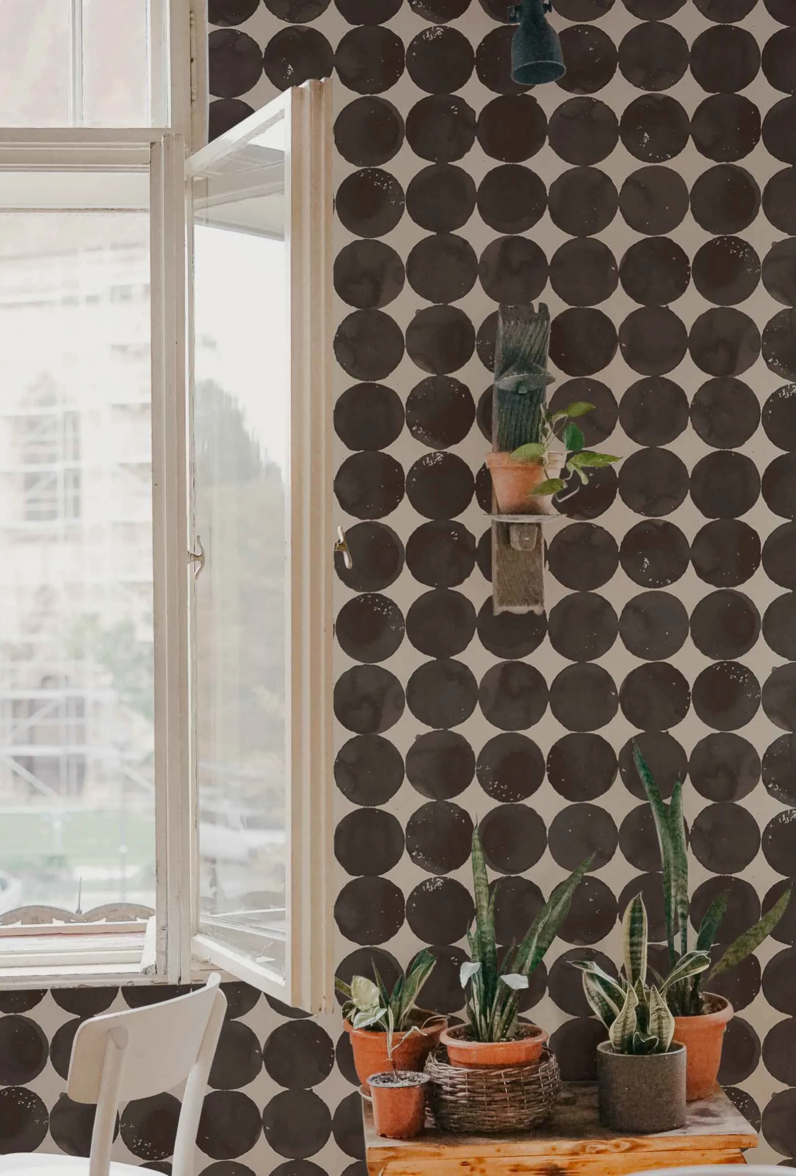 El papel pintado Luna Craters Onyx de Coordonné es un diseño geométrico en color negro de la colección Geo.