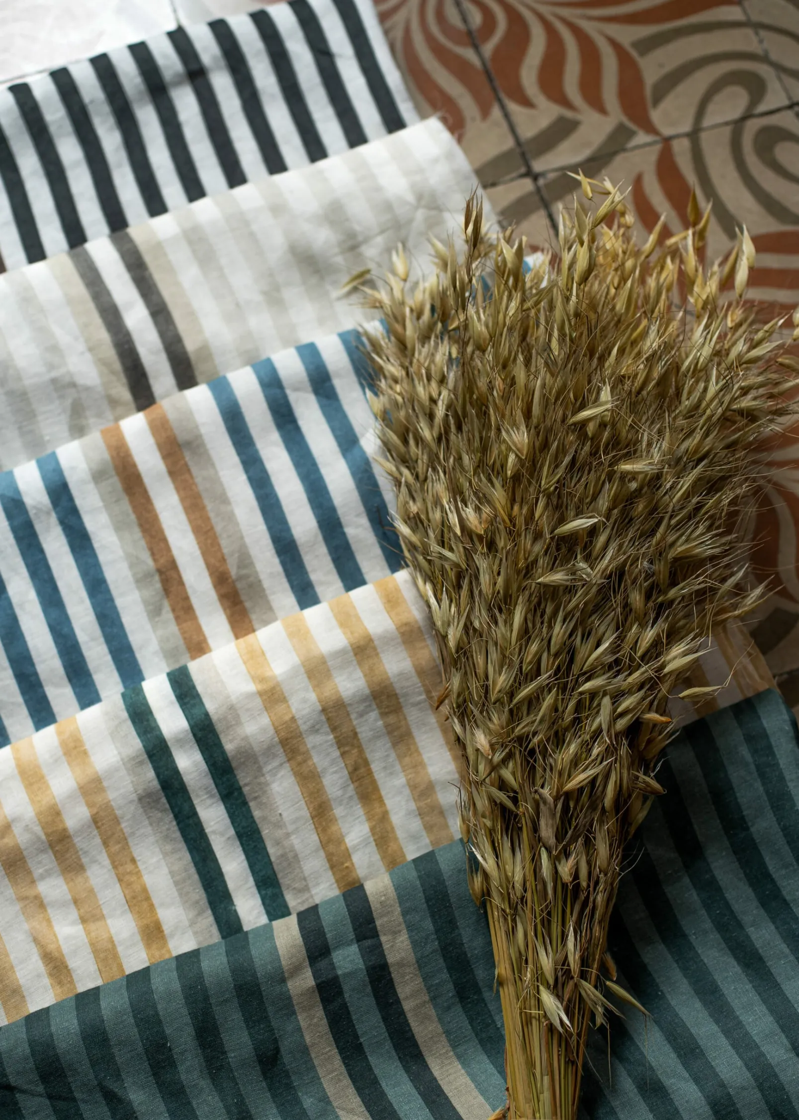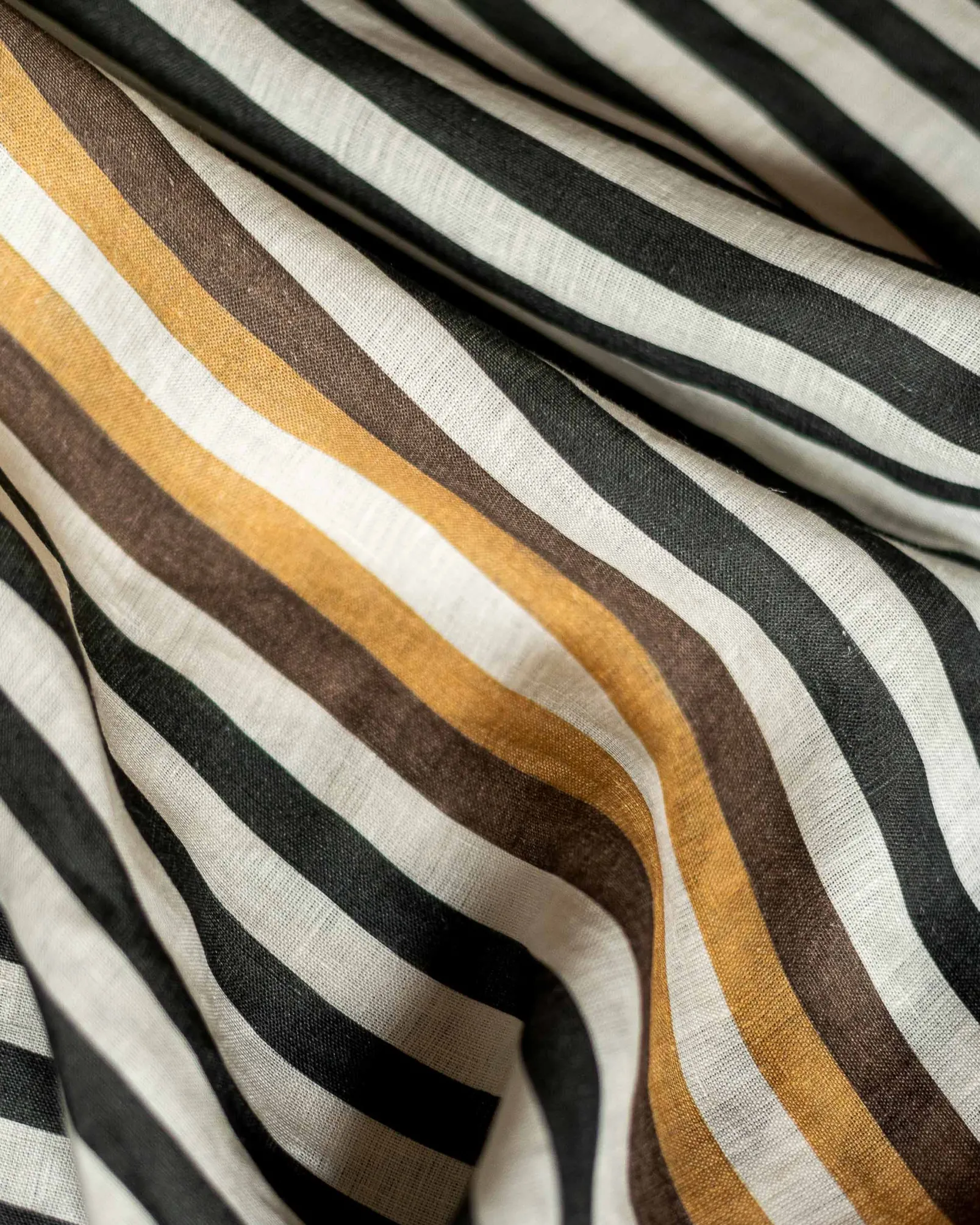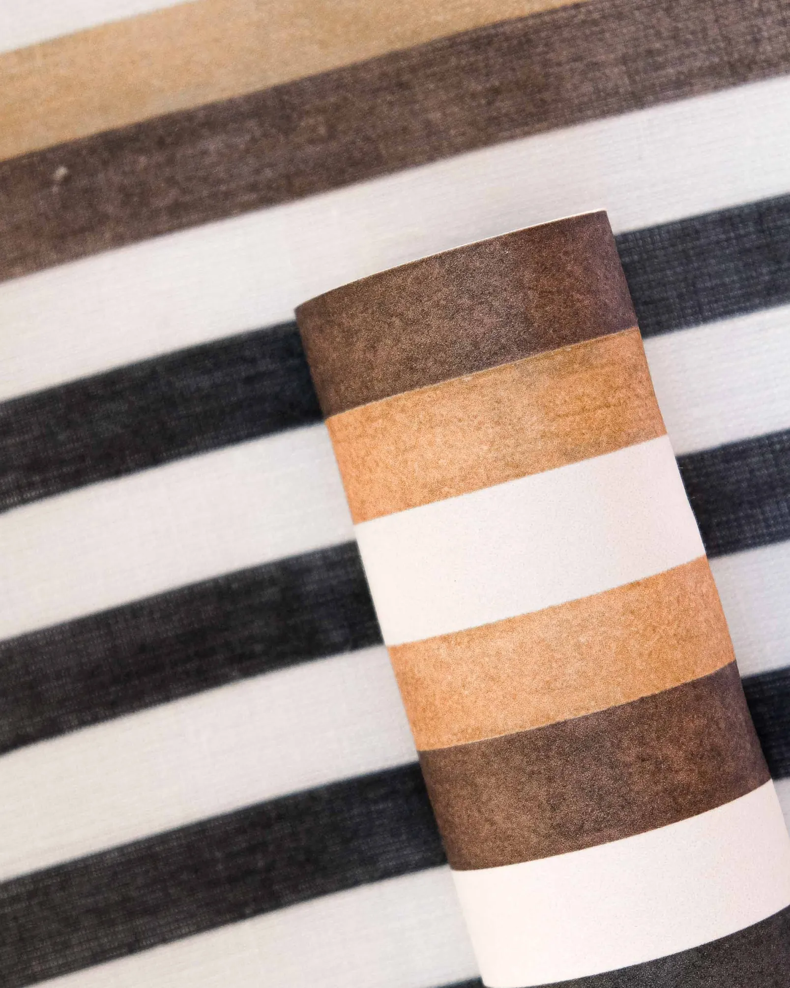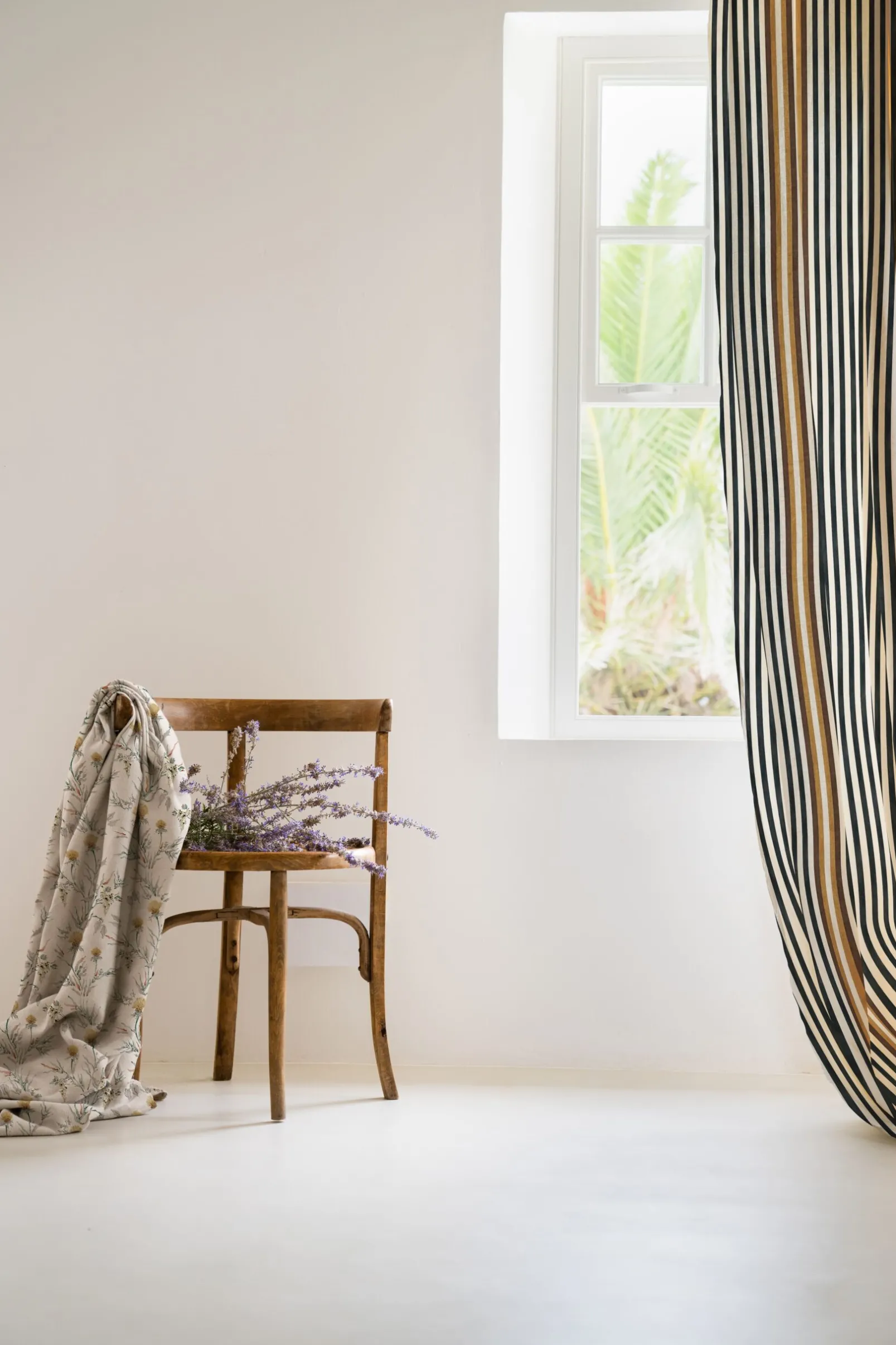La tela Luz y Sombra Pizarra de Coordonné es un diseño inspirado en rayas en blanco/negro de la colección Palacio de Cristal Fabrics.