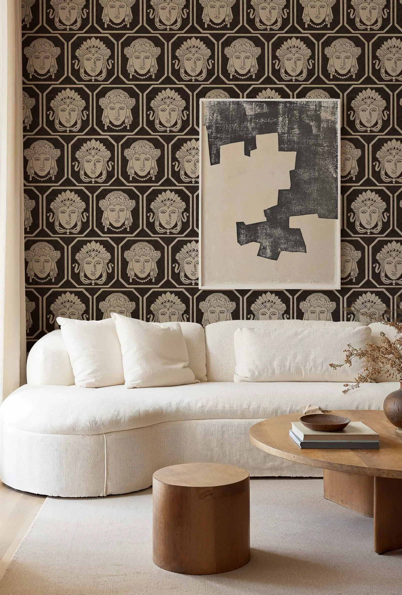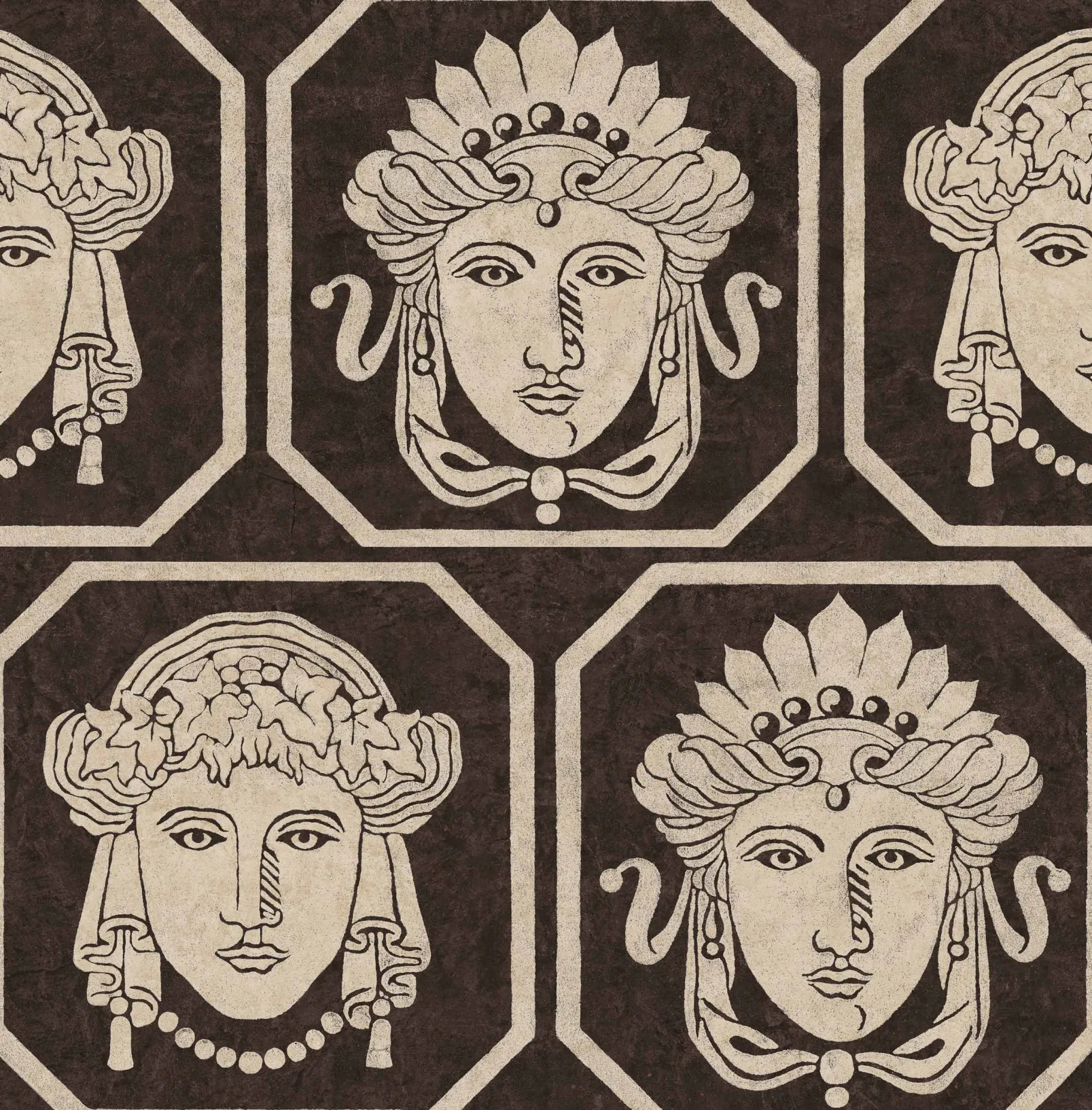 El Carbón Maiorum de Coordonné es un diseño de Personas en Negro de la colección Pompeya. Una digna disposición de máscaras ornamentales que decoraban los pabellones sagrados.