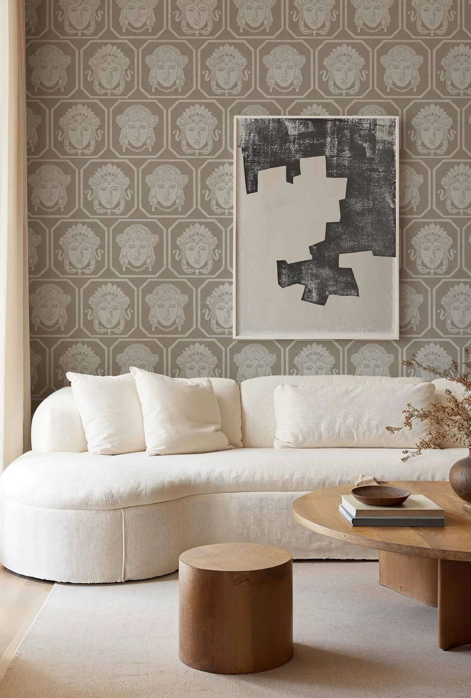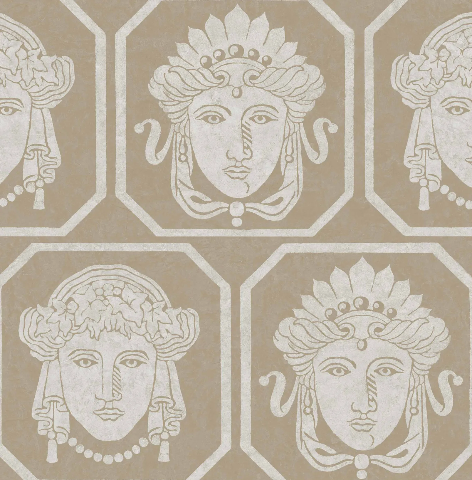 Maiorum Sand de Coordonné es un diseño People en Beige/Nude de la colección Pompei. Una digna disposición de máscaras ornamentales que decoraban los pabellones sagrados.