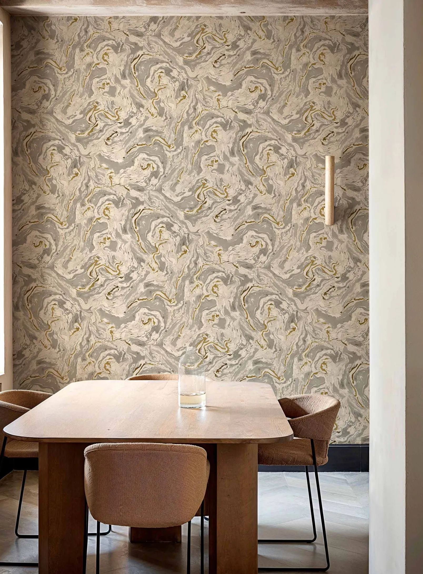 Marmorea Nacre de Coordonné es un diseño Texturas en Blanco/Gris de la colección Pompei. Elegantes motivos granulados pintados a mano que crean un aspecto de imitación de mármol de acuarela.