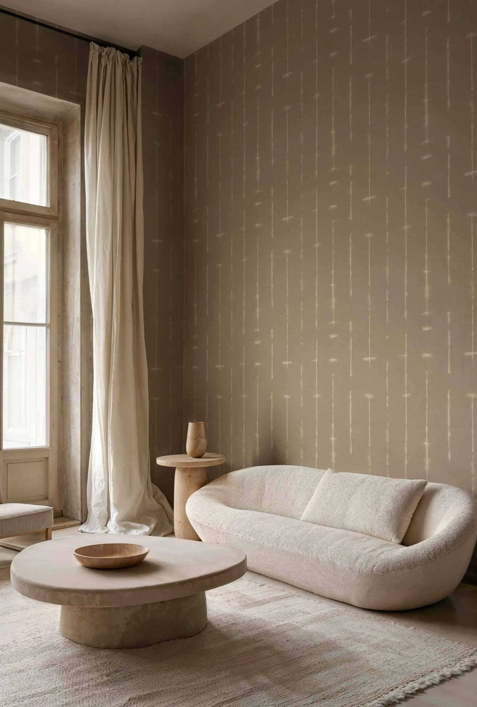 Miura Jute de Coordonné es un diseño de rayas en Nude de la colección Shibori. La sutil fluidez de los susurros del viento.