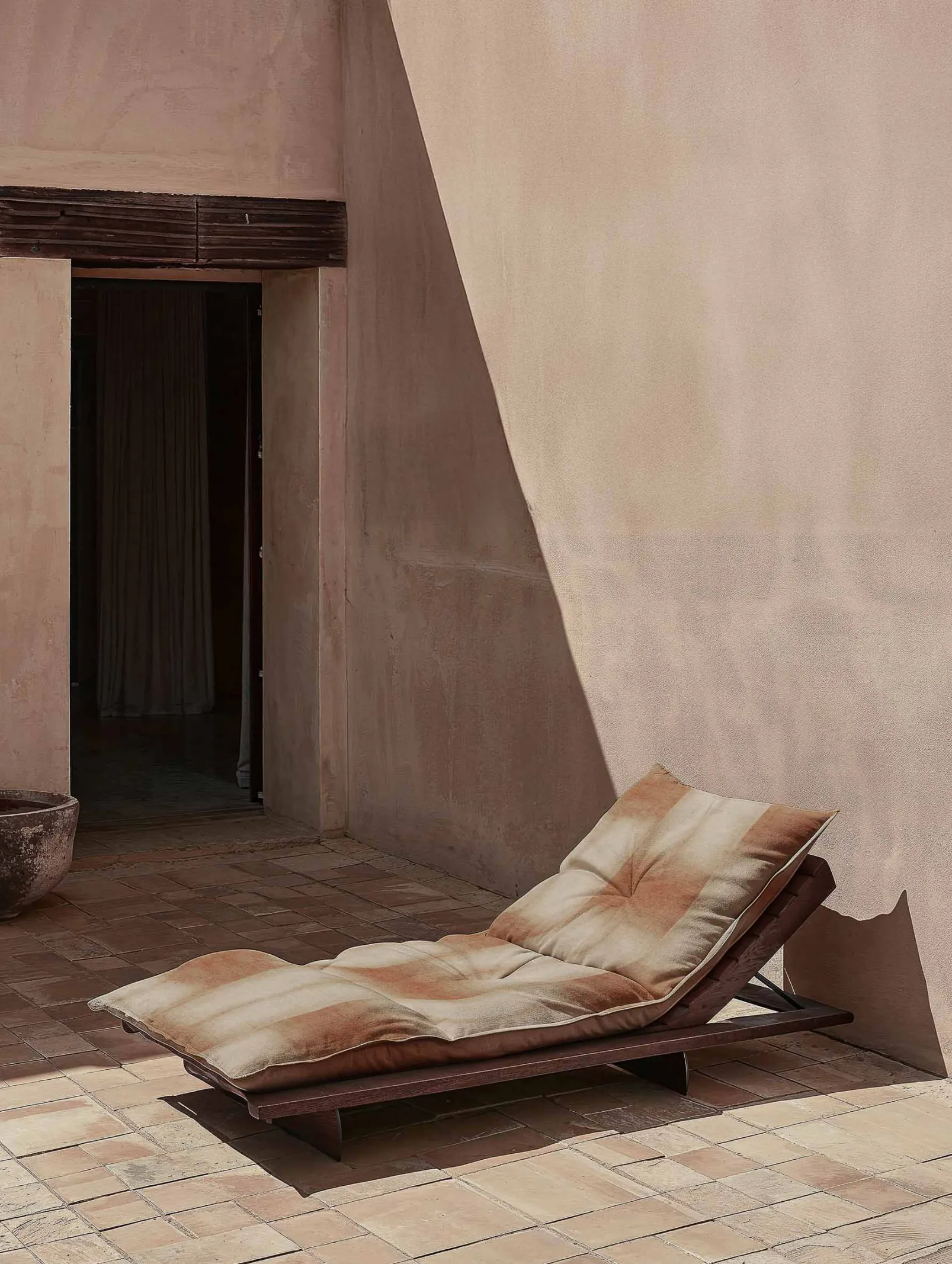 Mokume Amber de Coordonné es un diseño Texturas en rosa/lila de la colección Shibori Outdoor. Es la impresión del tiempo impresa en tela con certificaciones para uso exterior.