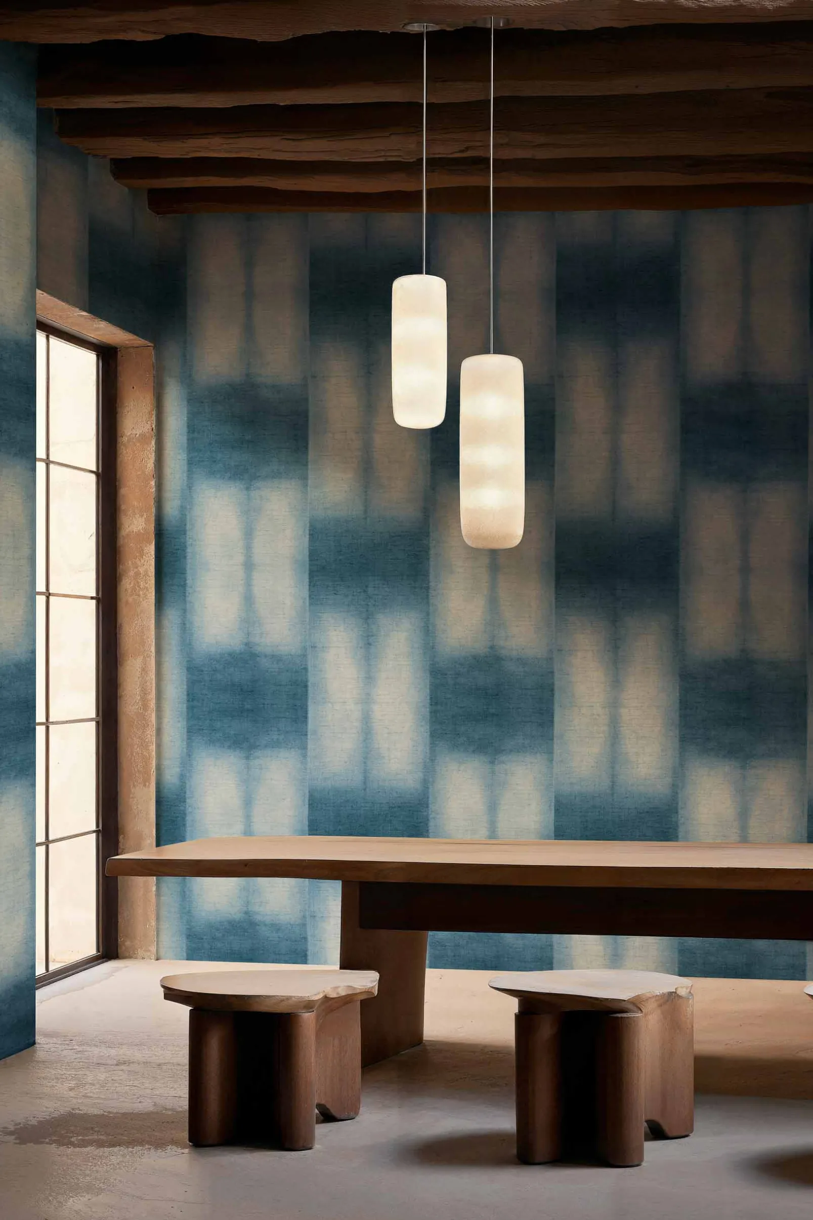 Mokume Indigo de Coordonné es un diseño Texturas en Azul/Azul marino de la colección Shibori. La belleza de las vetas de la madera.