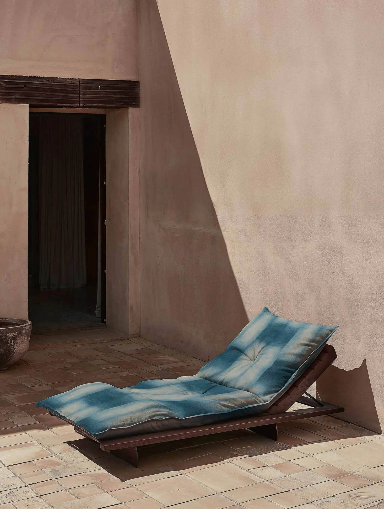 Mokume Indigo de Coordonné es un diseño de Texturas en Azul/Azul Marino de la colección Shibori Outdoor. Es la impresión del tiempo impresa en tela con certificaciones para uso exterior.
